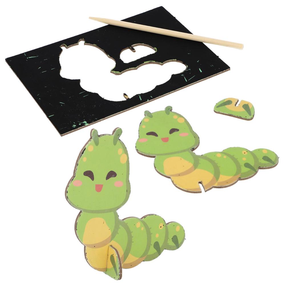 Tutustu jännittävään lasten 3D-palapeliin hyönteisaiheella, jossa raaputat litteiden palojen värit esiin mukana tulevalla raaputusvälineellä, aivan kuten raaputuspaperissa. Kun värit ovat esillä, kokoat osat helposti pystyssä seisovaksi hahmoksi. Sopii täydellisesti hauskoiksi juhlalahjoiksi, joissa on yllättävä hyönteinen ja glow in the dark -efekti.