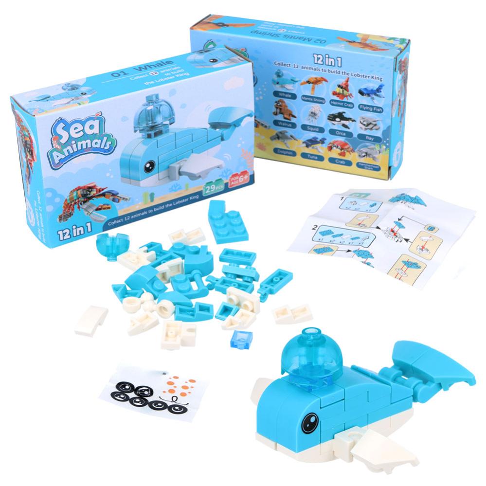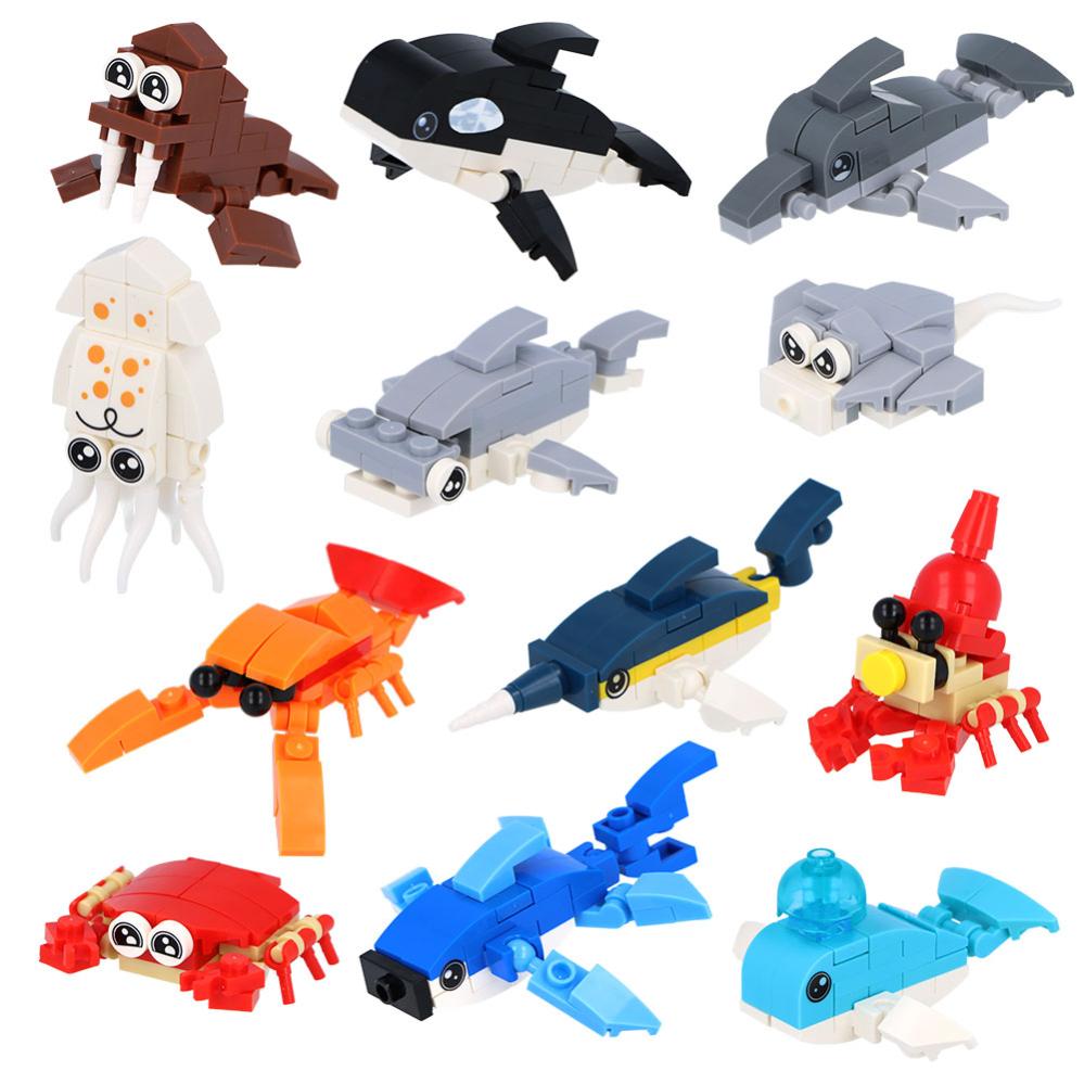 3D-rakennussarja Merieläimet sisältää setin, jossa on 12 kpl legorakennussarjoja kahdentoista erilaisen merieläimen, esimerkiksi delfiinin, valaan, mursun, mustekalan, ravun ja vasarahain rakentamiseen. Kerää kaikki kaksitoista, niin voit rakentaa niistä hummerikuninkaan. Rakennussarjoja on saatavana kahdentoista eri lajitelmana, mutta ne myydään lajittemattomina ja yksittäin, joten on yllätys, minkä merieläimen saat.