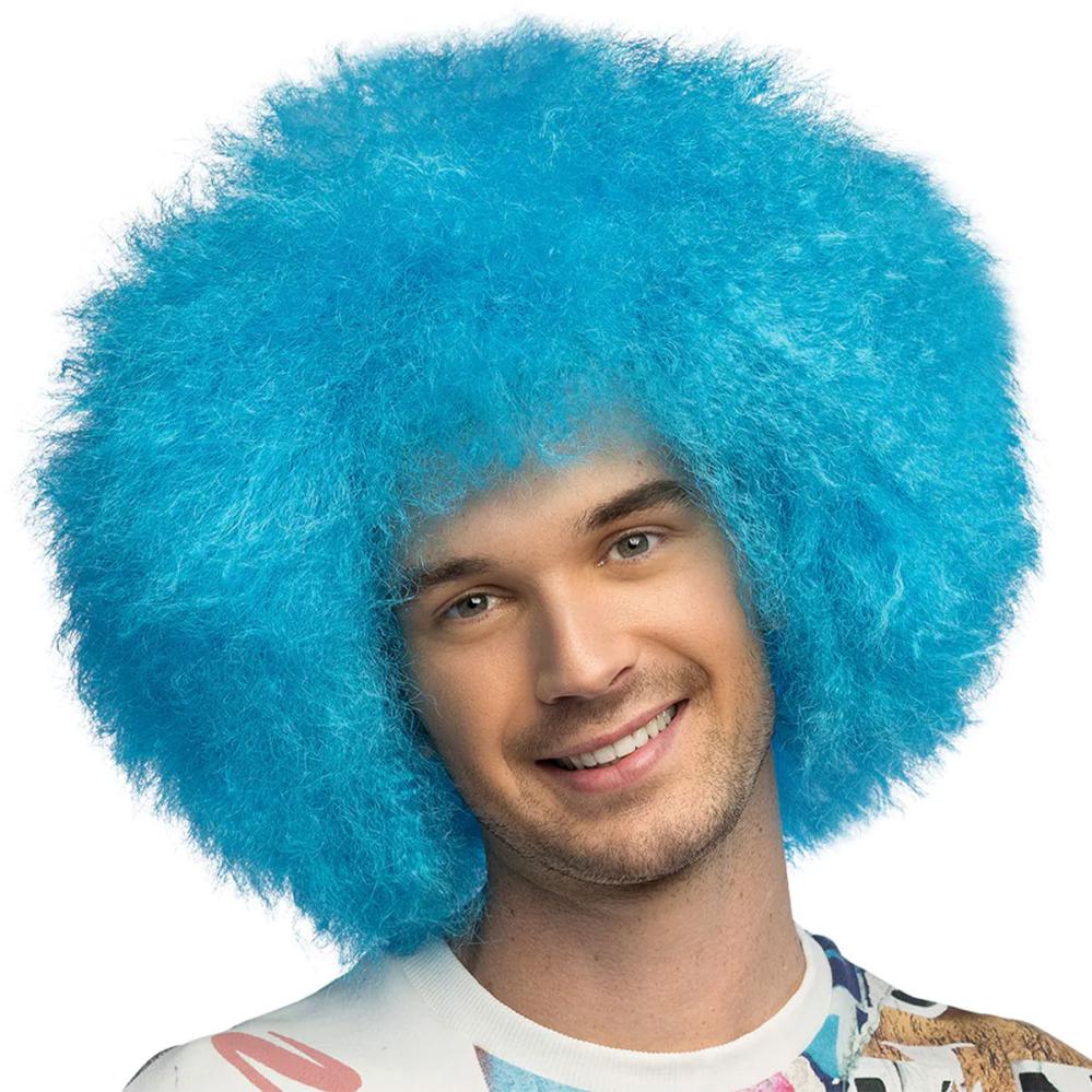 Erotu seuraavissa neoniteemabileissä näyttävän neonsinisellä, kiharalla peruukilla. Suuri afroperuukki antaa klassisen discoperuukkityylin, joka taatusti kerää katseet tanssilattialla.