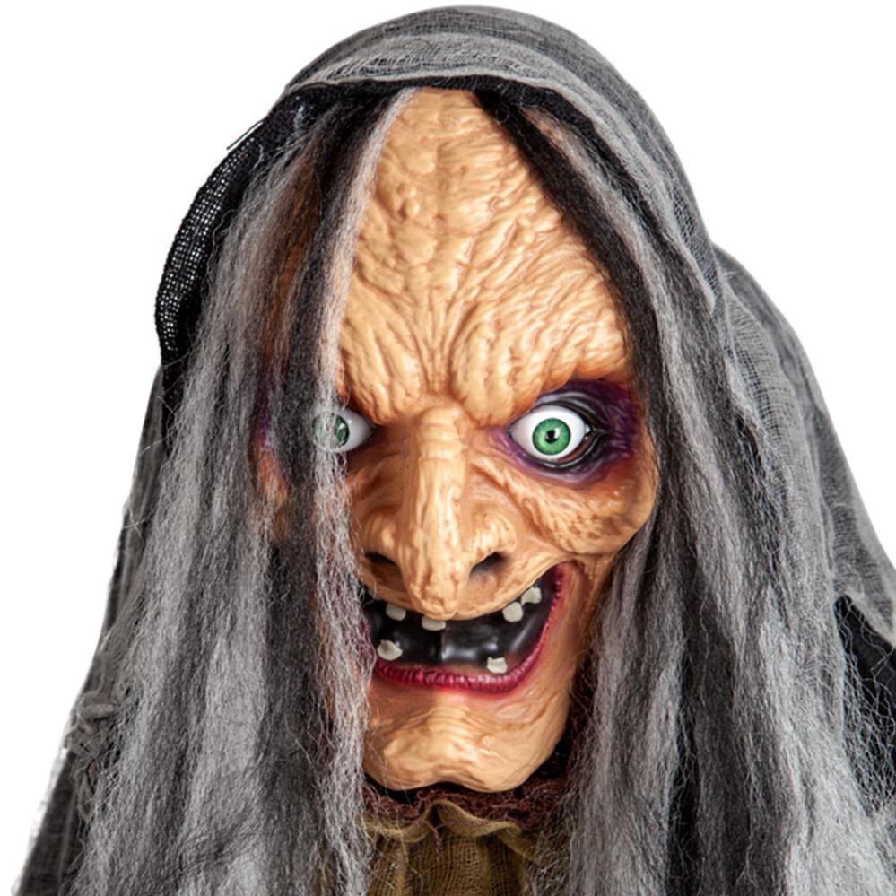 Luo kauhua Halloween-juhliin animatronisella Halloween-rekvisiitalla, joka todella huomataan. Tämä animoitu noita, Halloween-koriste, liikkuu, loistaa ja nauraa ilkeästi. Tämä on täydellinen Halloween-rekvisiitta ja Halloween-koriste, jossa on valot, äänet ja liikettä.