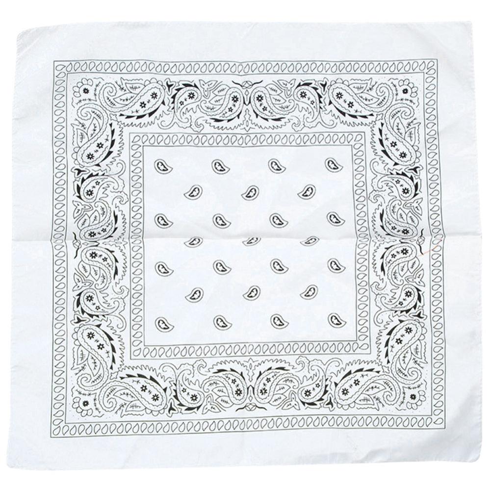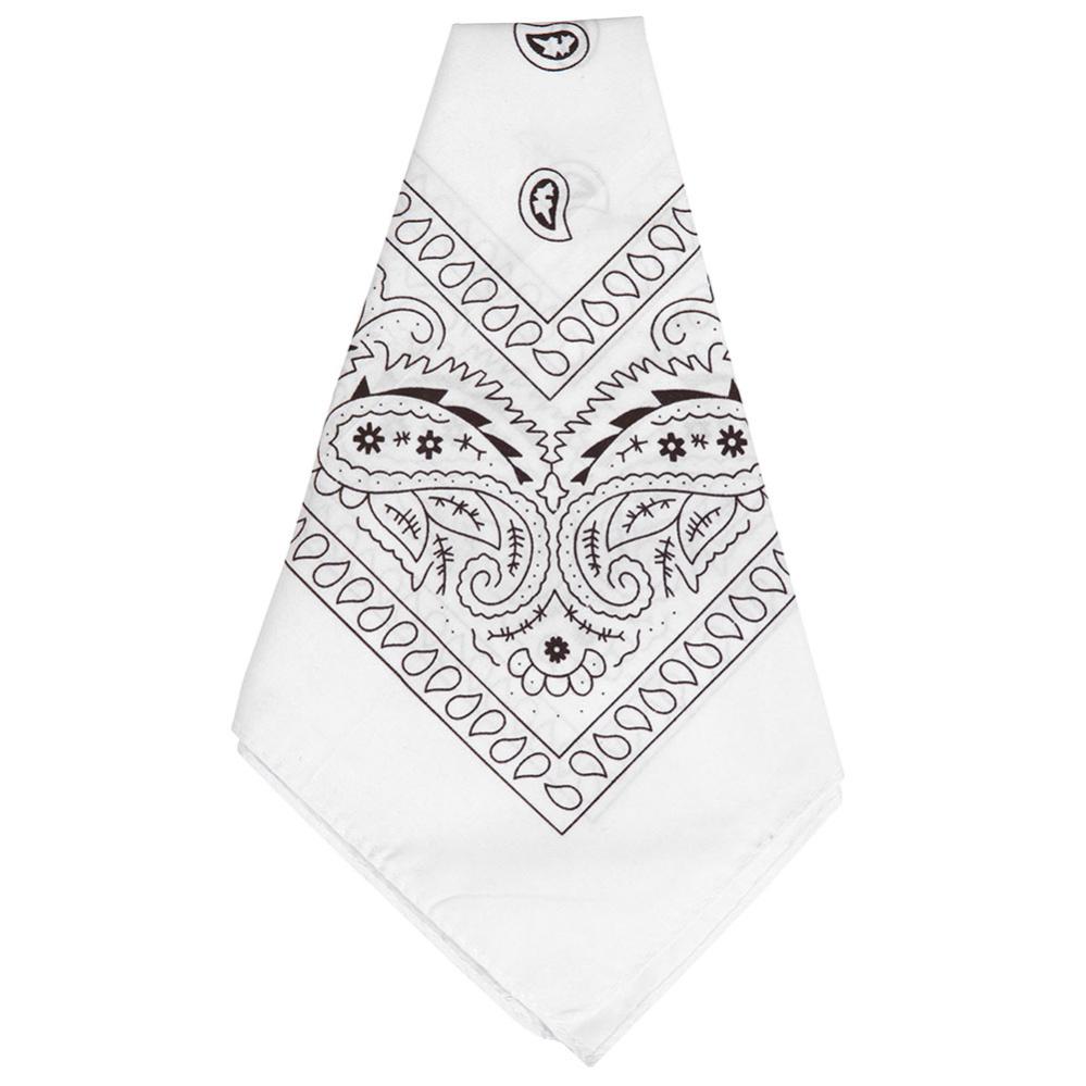 Anna tyylillesi trendikäs säväys tällä valkoisella bandanalla, jossa on klassinen musta kuvio ja joka sopii täydellisesti sekä rentoihin että särmikkäisiin asuihin. Käytä sitä hiuksissa, kaulan ympärillä tai tyylikkäänä asusteena esimerkiksi piraatti- tai cowboy-naamiaisiin.