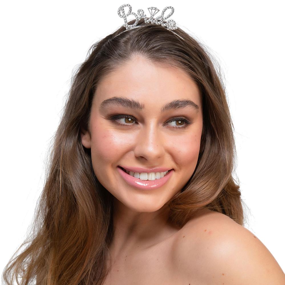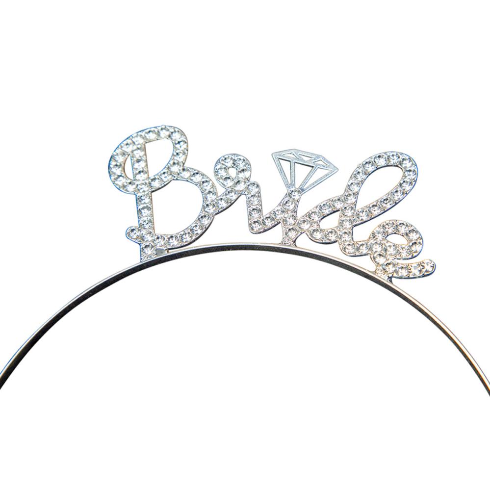 Bride Panta Hopea sisältää hopeisen metallidiadeemin, jossa on teksti "Bride" ja jota koristavat pienet muovitimantit.
