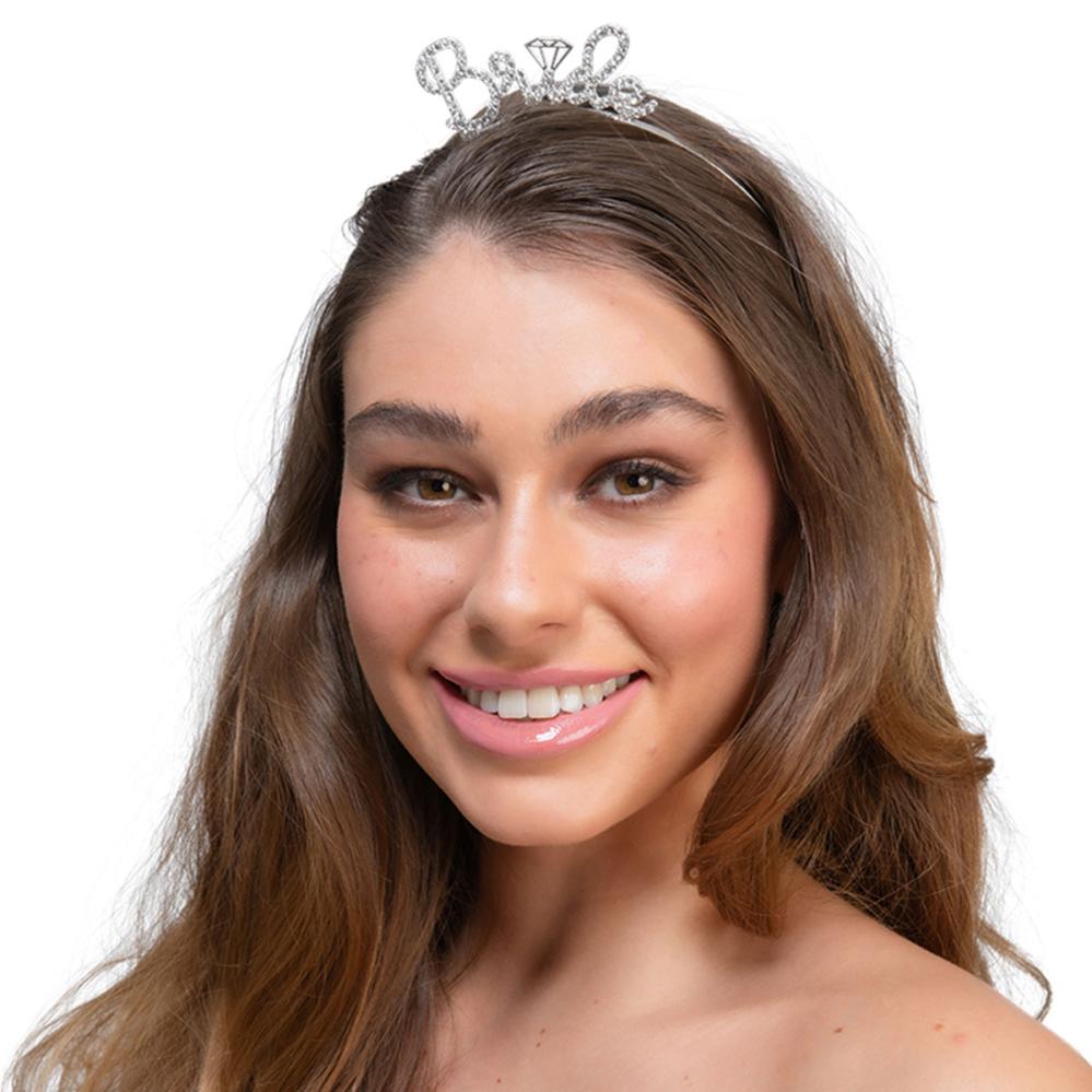 Luo tyyliä juhliin hopeisena hohtavalla Bride-diadeemilla, jonka muovitimantit kimaltelevat. Täydellinen polttareiden asusteeksi ja ehdoton hankinta tulevan morsiamen asuun.