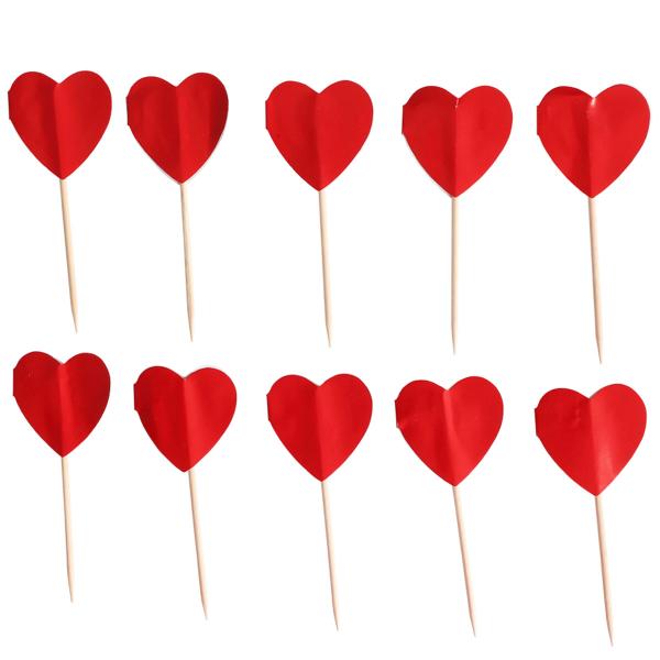 Cake Picks Punaiset Sydämet 10-kpl