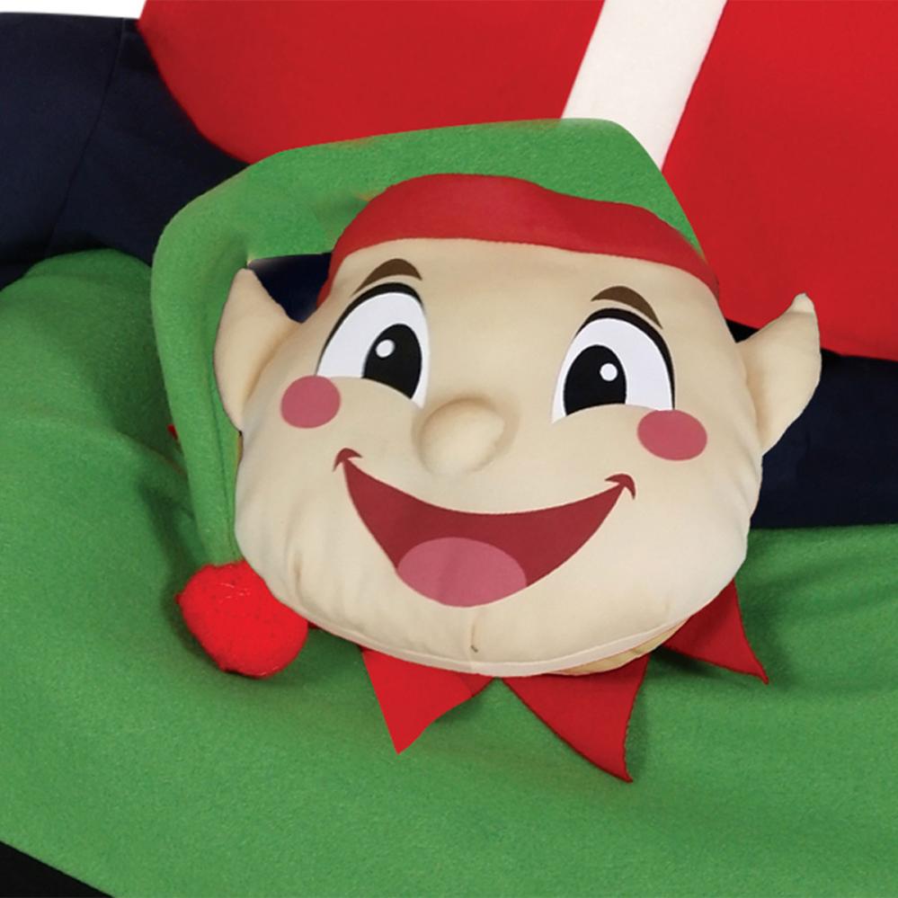 Carry Me Elf Joulupuku on joulupuku, joka esittää tonttua, joka kantaa joulupukkia selässään. Pukuun kuuluu punainen tonttutakki valkoisin yksityiskohdin ja musta vyö, tonttulakki sekä housut, joissa on tonttukuvio ja sivuilla roikkuvat pehmustetut mustat valejalat.