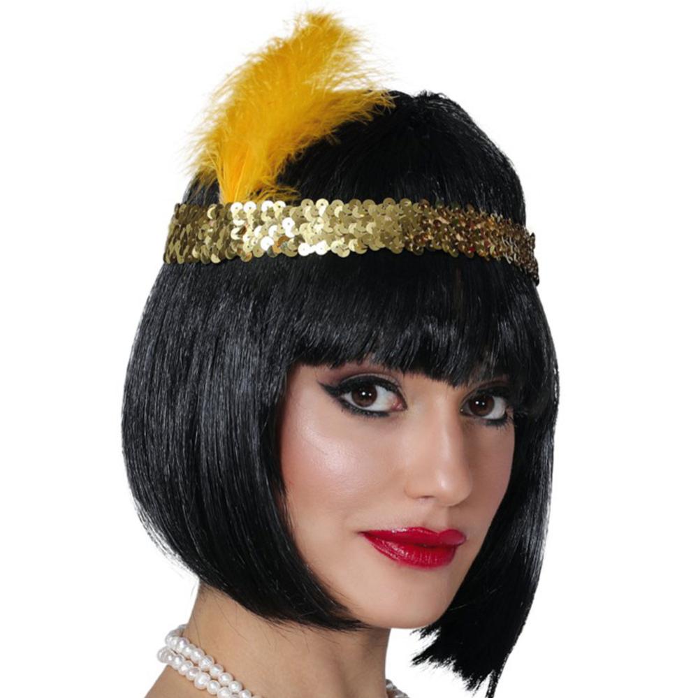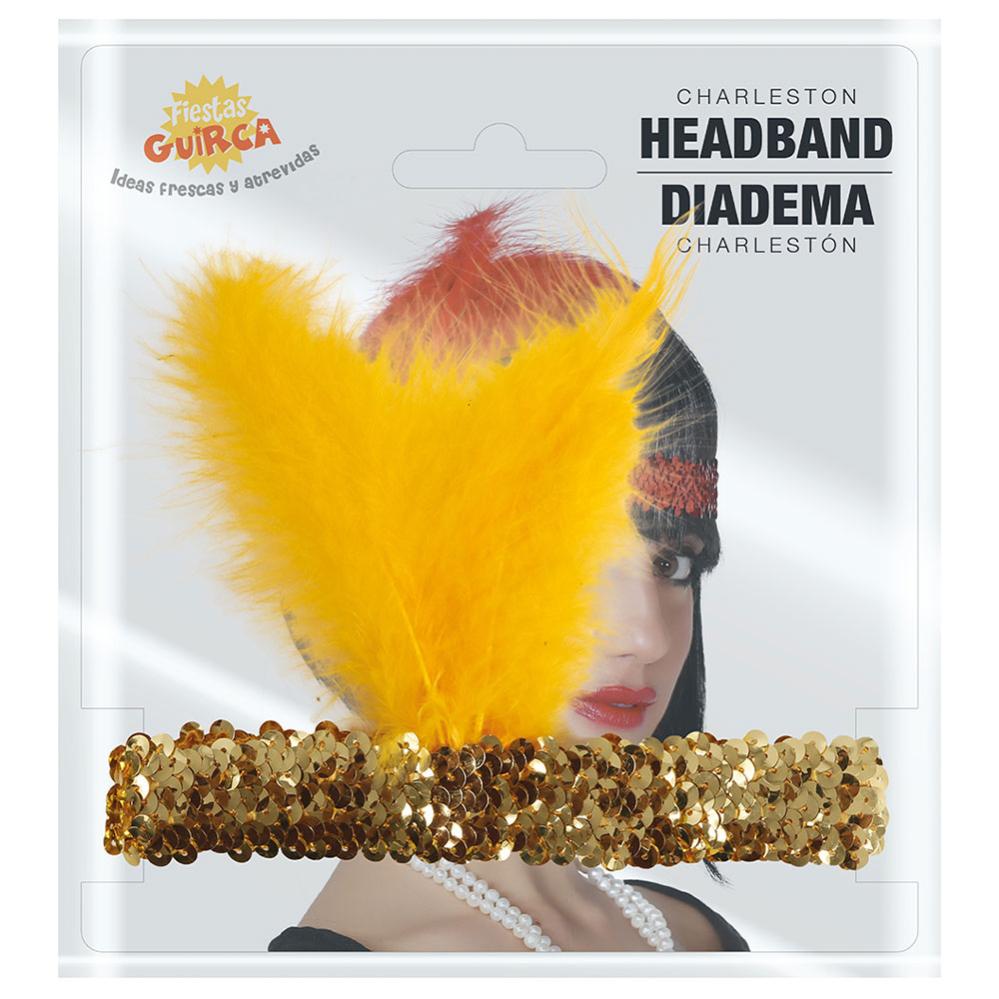 Charleston-hiuspanta, joka vangitsee 20-luvun glamourin tunnelman, yhdistää höyhenet ja paljetit kullan sävyissä, mikä tekee jokaisista naamiaisista ikimuistoiset. Tunne kuin tanssisit sisään jazzin ja eleganssin aikaan heti kun puet tämän asusteen.