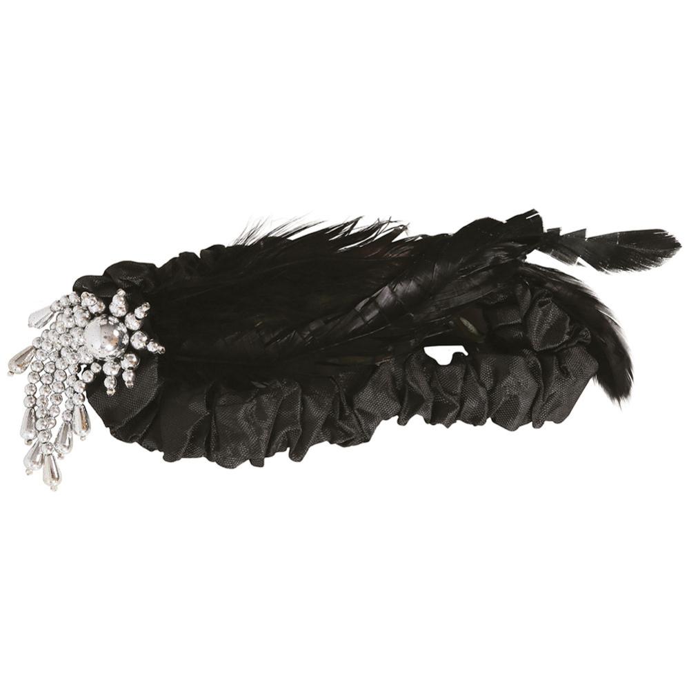 Charleston-hiuspanta kietoo sinut mustaan eleganssiin, ja höyhenet tuovat jokaiseen naamiaiseen aidon 20-luvun tunnelman. Tämä hiuspanta muuttaa sinut nopeasti juhlien ikoniksi, jolloin sekä höyhenet että klassinen musta tunnelma ovat illan puheenaiheita.