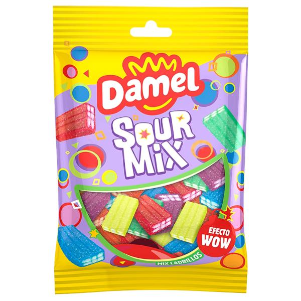Damel Sour Candy Mix koostuu happamista karkkipaloista, joilla on hedelmäinen maku. Hihnat ovat gelatiinittomia. Sisältää 100 grammaa.