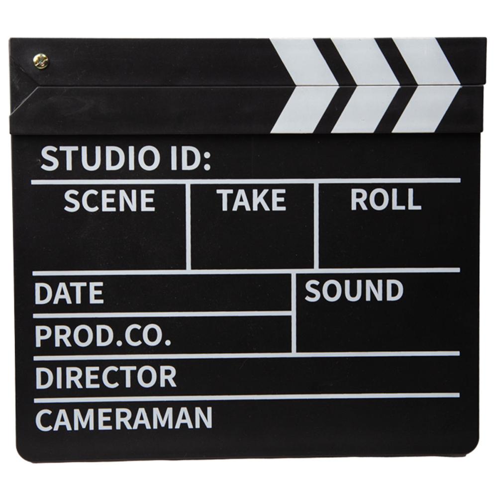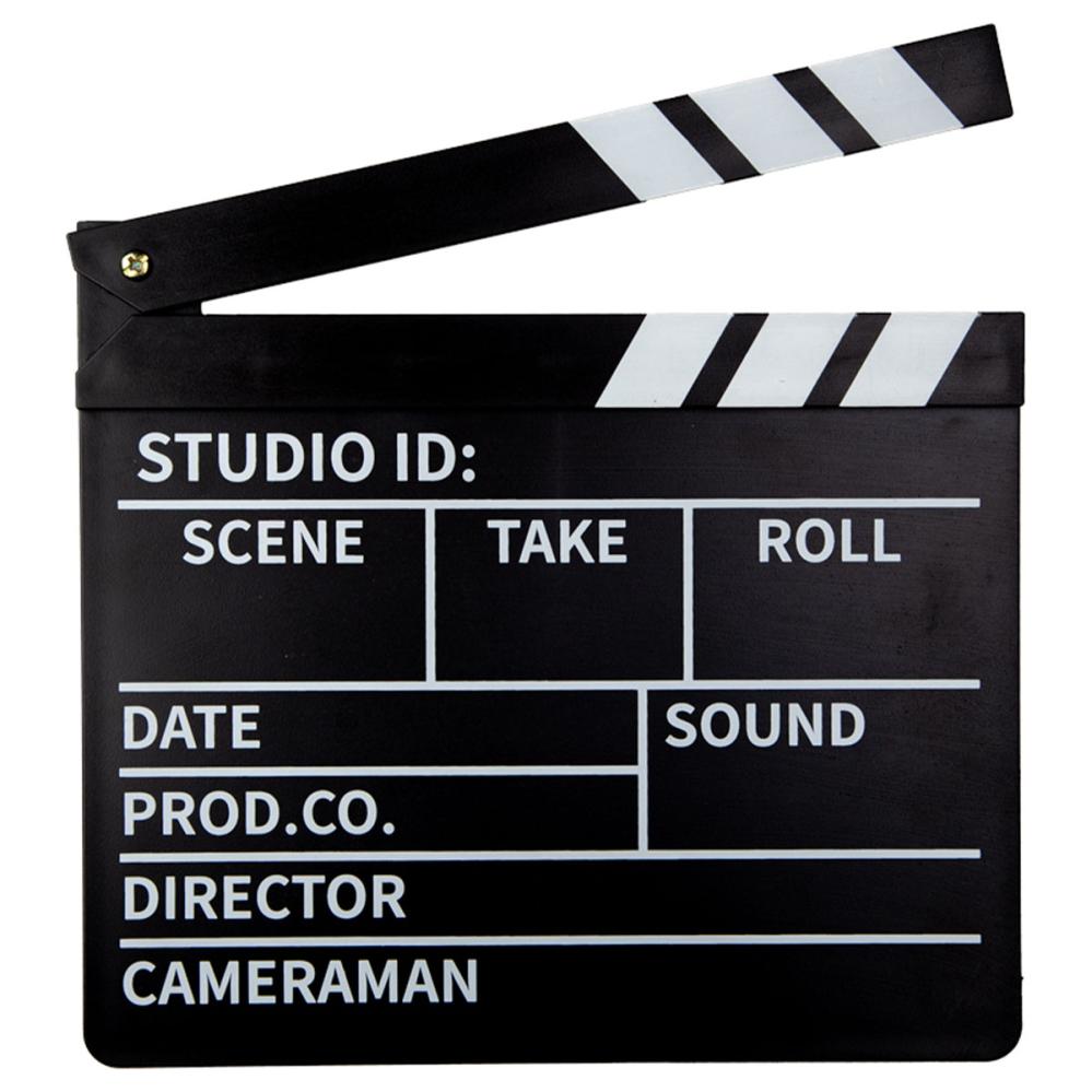 Elokuvaklaffi Hollywood sisältää mustavalkoisen elokuvaklaffin, jossa on valmiiksi painetut tekstit.