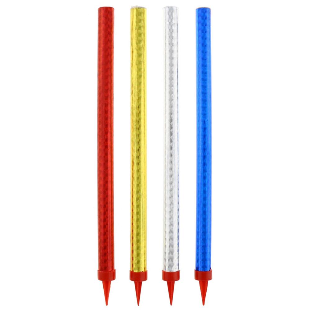 Erittäin Pitkät Jääsoihdut Värinen 4-kpl sisältää 4 kpl pitkiä, kimaltelevia jääsoihtuja väreissä punainen, sininen, hopea ja kulta. Jääsoihduissa on myös alapäässä punainen muovikärki, jonka avulla ne on helppo työntää esimerkiksi kakkuun tai jälkiruokaan.