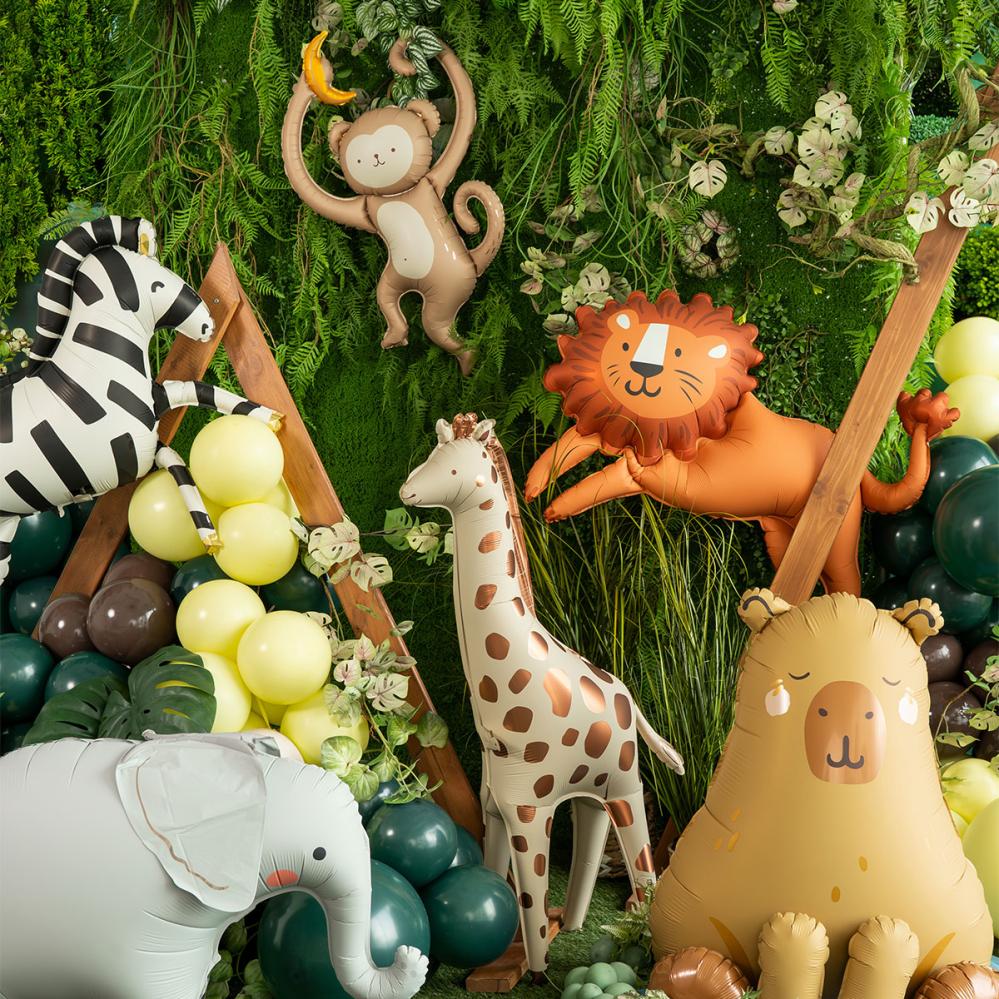 Viidakkoteemaisissa juhlissa apinailmapallosta tulee nopeasti illan hauskuuttaja, ja tämä folioilmapallo sopii mainiosti silloin, kun juhlan teemana ovat eläimet, erityisesti jos eläinilmapallo odottaa jo pöydän ääressä. Se kerää mielellään muutamat naurut jo ennen kuin kakkua on edes ehditty tuoda esille.