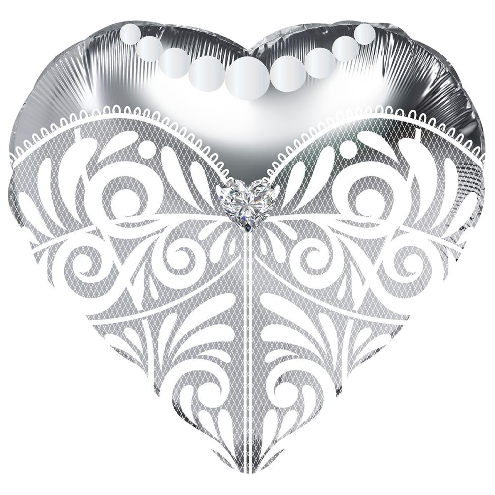 Tietoa tuotteesta Folioilmapallo Häämekko Hopea 45 cm: