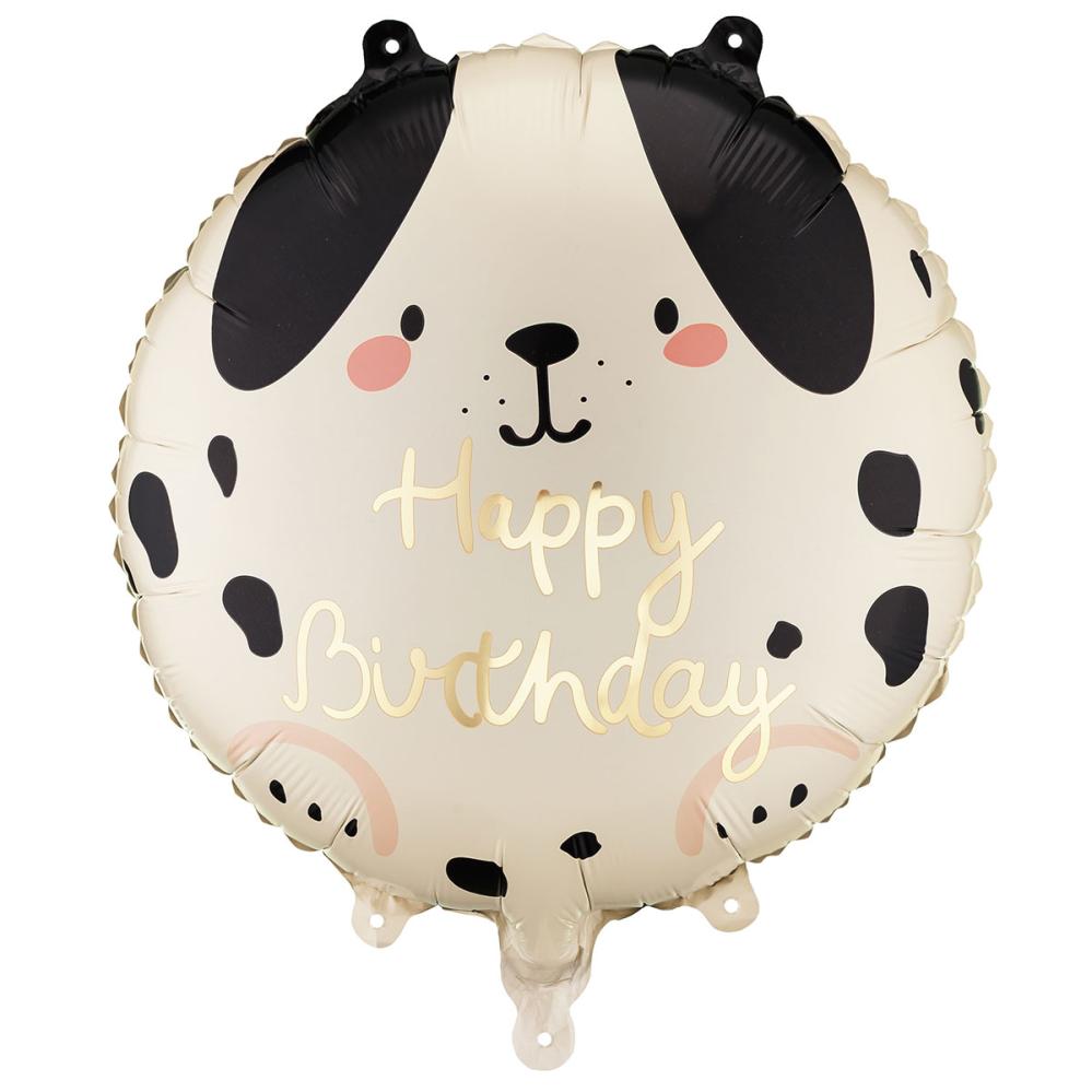 - Pyöreä syntymäpäiväilmapallo, jossa on koira-aihe