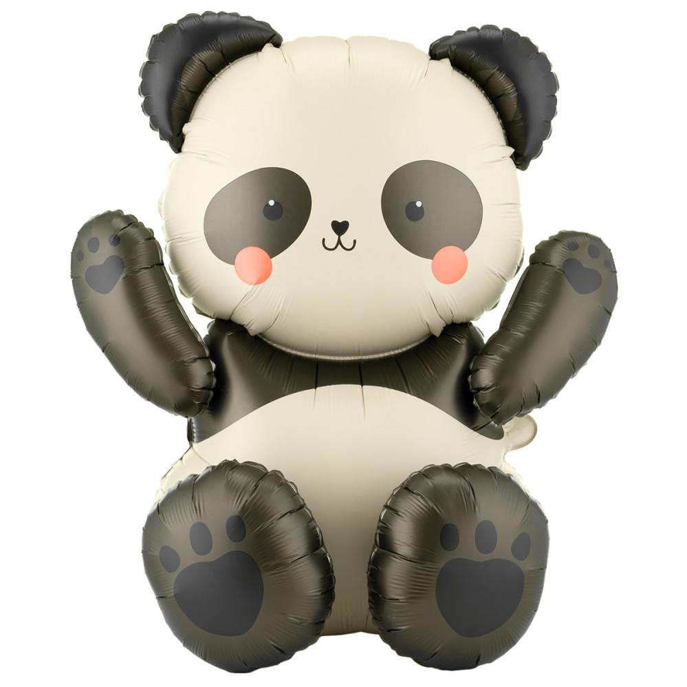 Folioilmapallo Istuva Panda 68 x 72 cm sisältää valkoisen, harmaan ja mustan istuvan pandan muotoisen folioilmapallon, jolla on punertavat posket. Pandan jalat täytetään erikseen ja kiinnitetään sen jälkeen helposti vartaloon Täytetään vain ilmalla, ja se on helppo puhaltaa täyteen mukana tulevalla puhallusputkella tai ilmapallopumpulla nopeampaa täyttöä varten.