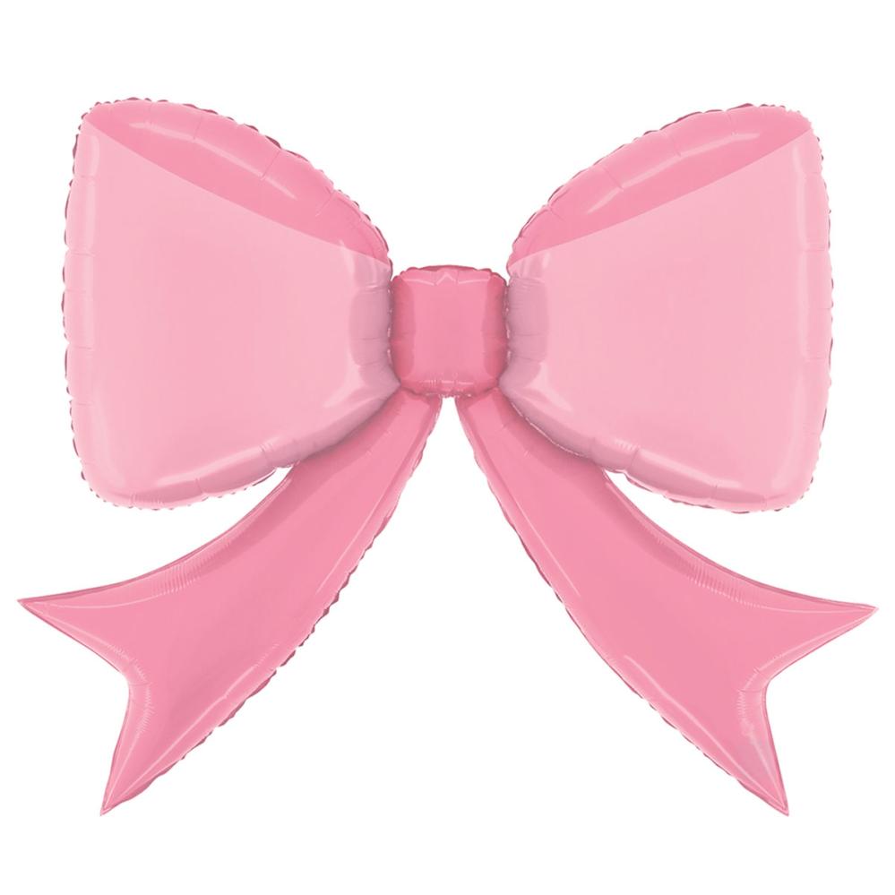 Folioilmapallo Rusetti Vaaleanpunainen sisältää vaaleanpunaisen rusetin muotoisen folioilmapallon.