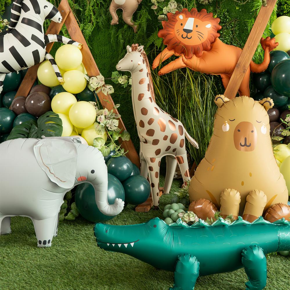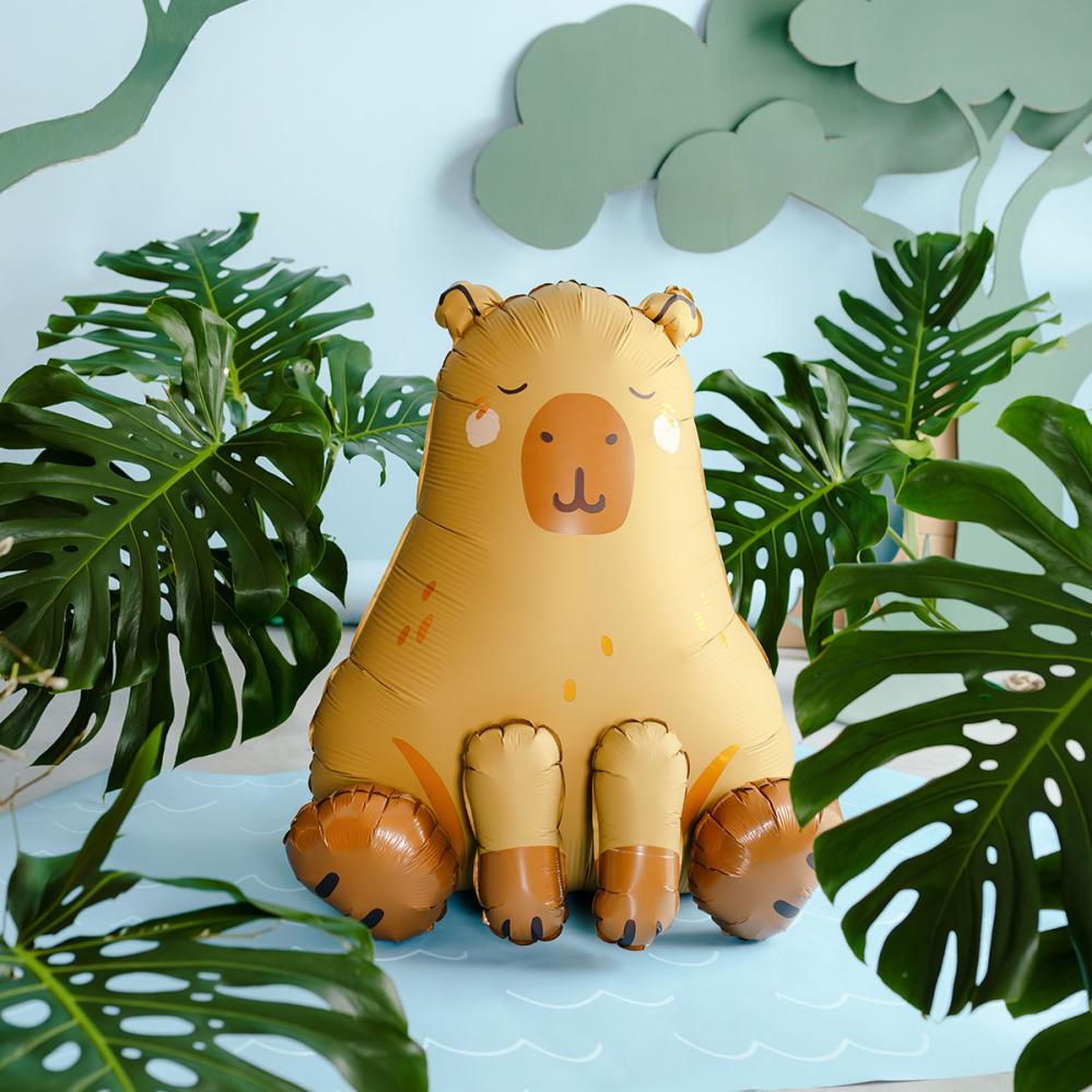 Tästä kapybarailmapallosta tulee nopeasti juhlan rennoin vieras niin viidakkobileissä kuin eläinjuhlissakin, ja se sulautuu hienosti joukkoon viidakkoteemaisten eläinilmapallojen kanssa. Folioilmapallona tämä eläin on taattu tunnelmannostattaja, joka saa vieraat hymyilemään.
