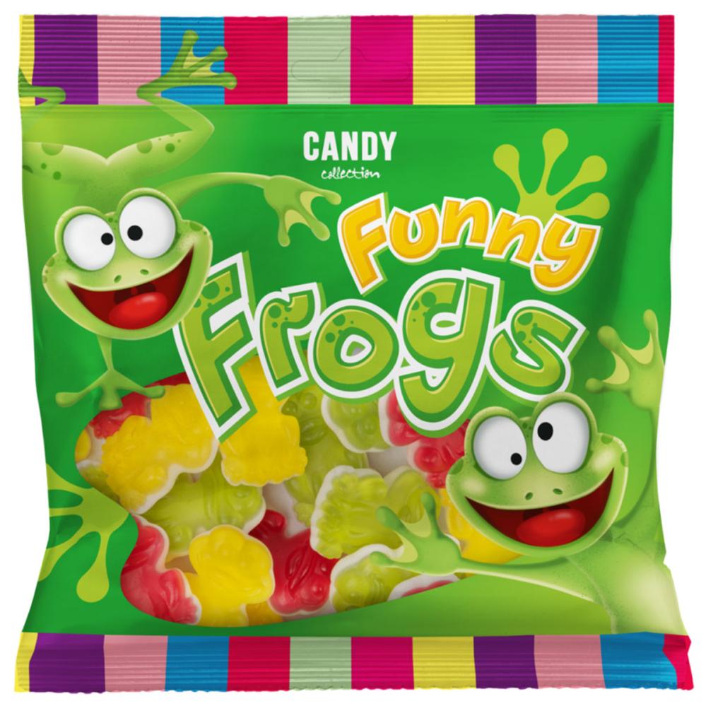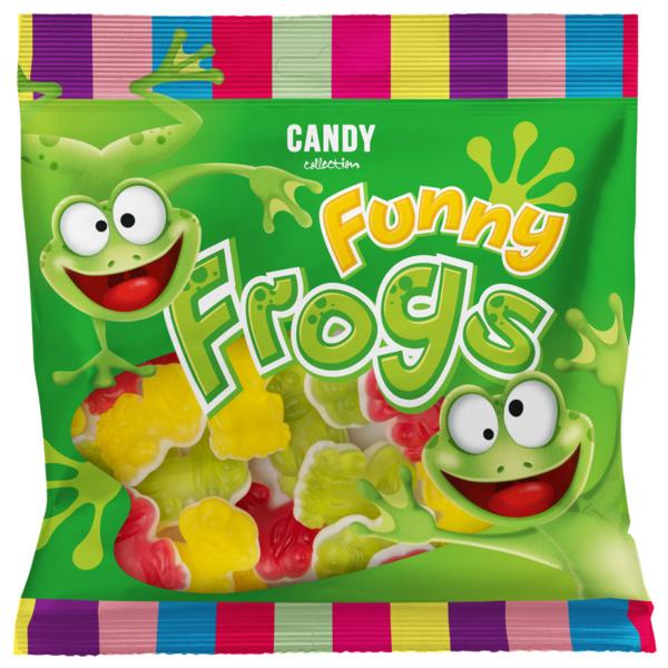 Funny Frogs Karkkipussi 270g on karkkipussi, joka on täynnä hedelmäisiä hedelmä- ja vaahtokarkkeja karkkisammakoiden muodossa. Täydellinen Candy Collection -karkiksi juhliin, joissa hedelmäiset maut ovat keskiössä.