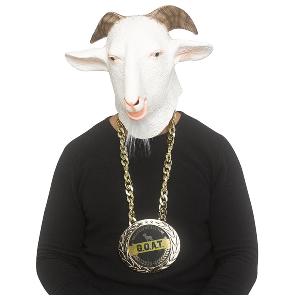Panosta hauskaan Halloween-asuun tämän eeppisen G.O.A.T Tarvikesarjan avulla. Tämä yksityiskohtainen lateksinen vuohinaamari ja kullanvärinen medaljonki tekevät tästä itsestään selvän valinnan G.O.A.T.-naamiaistarvikkeiden joukossa.
