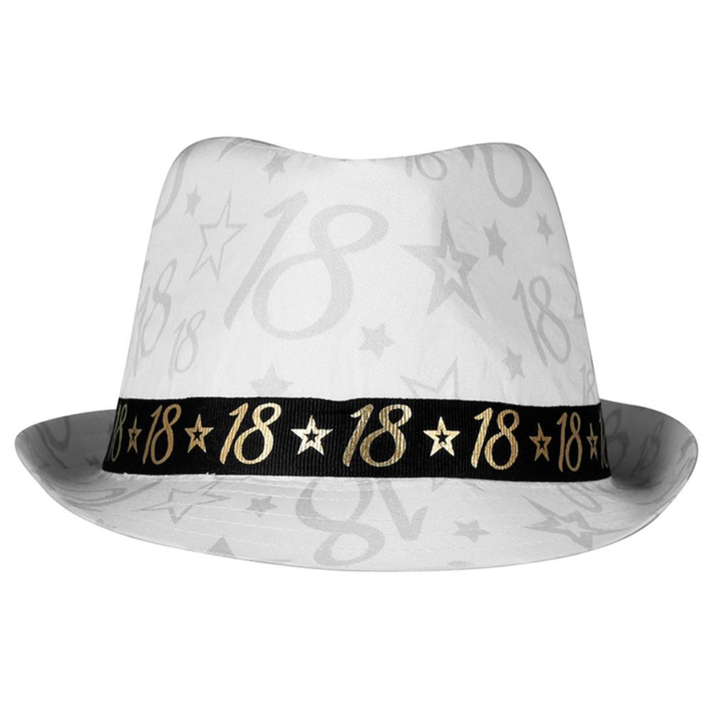 Tämä hattu on valkoinen fedora, joka tuo gangsteritunnelmaa jokaiseen 18-vuotissyntymäpäivään. Gangsterihatun käyttäminen, joka kiiltää kuin paljettihattu, tuo sekä tyyliä että naurua. Fedorahattu, joka on koristeltu syntymäpäivähatun tavoin, luo aina oikean tunnelman jokaiseen 18-vuotisjuhlaan.