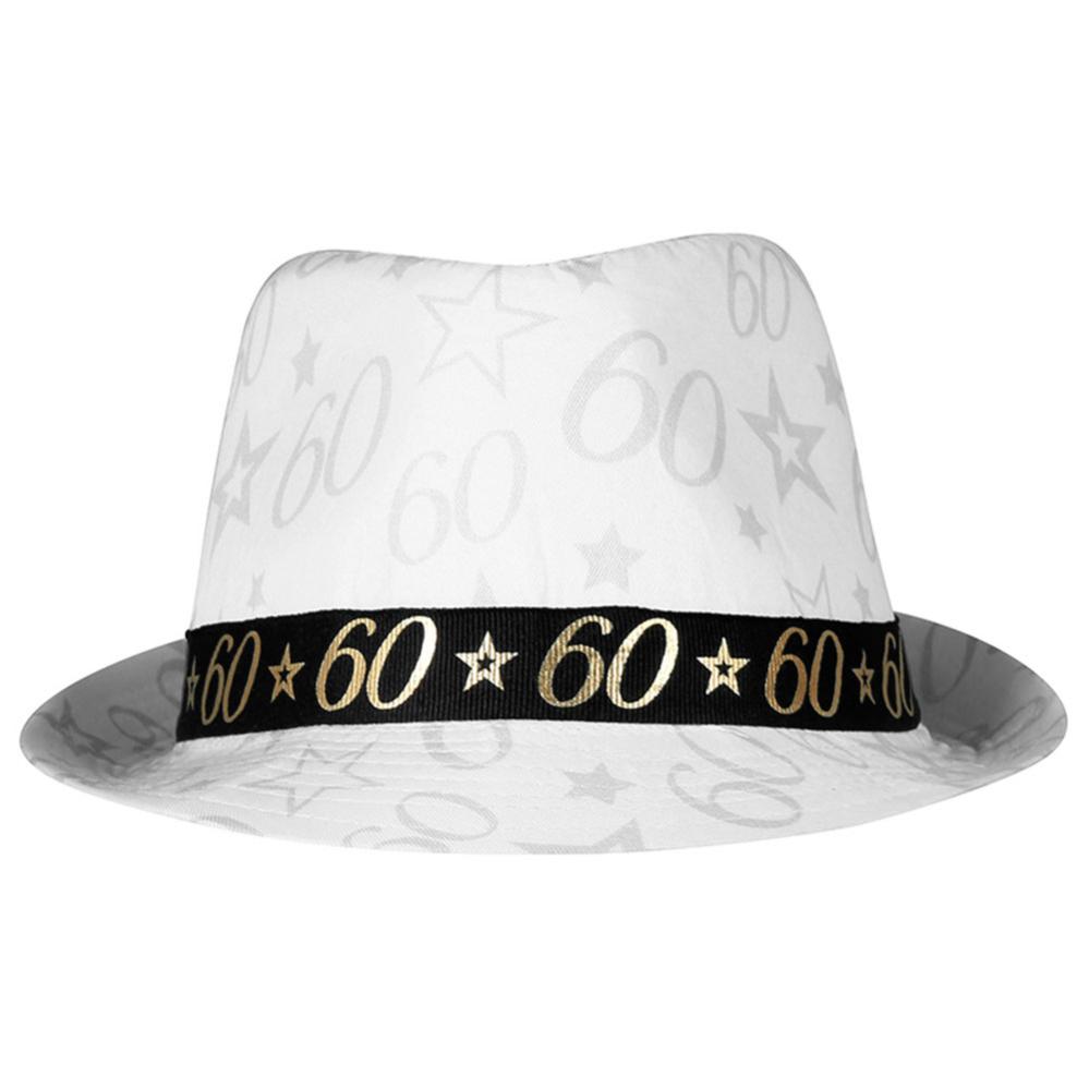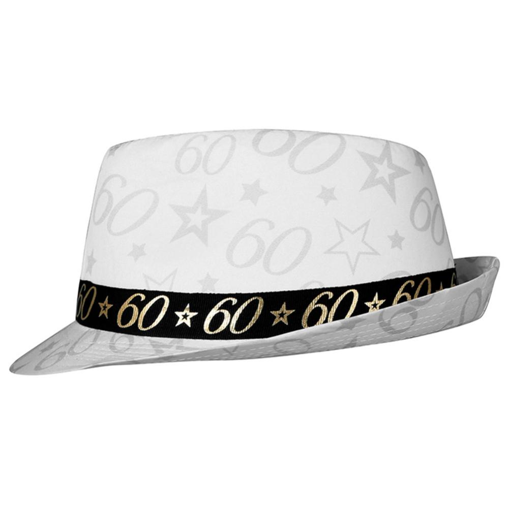 Valkoinen fedora sopii täydellisesti gangsterin hatuksi 60-vuotissyntymäpäiville. Kunnon syntymäpäivähattu saa taatusti naurut aikaan juhlissa. Tämän gangsterihatun käyttäminen, joka toimii myös fedorahattuna ja paljettihattuna, antaa kaikille vieraille syyn hymyillä.