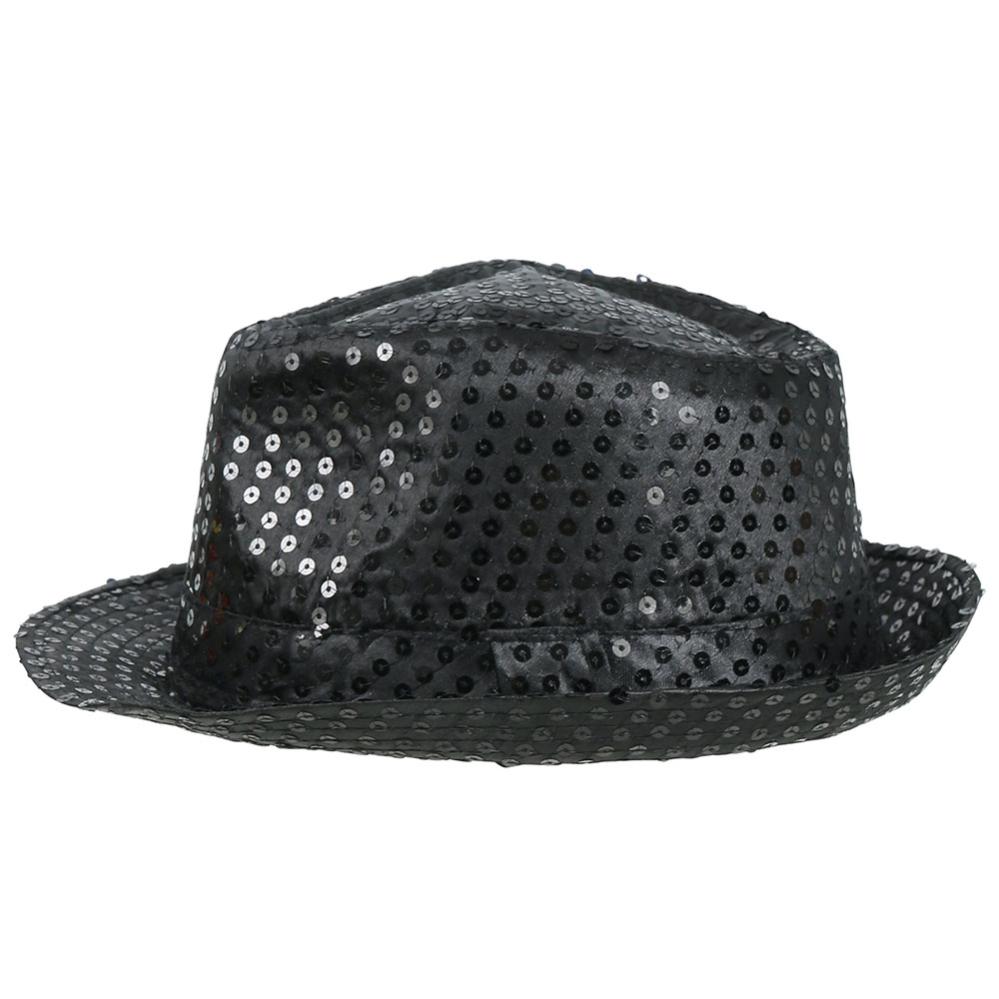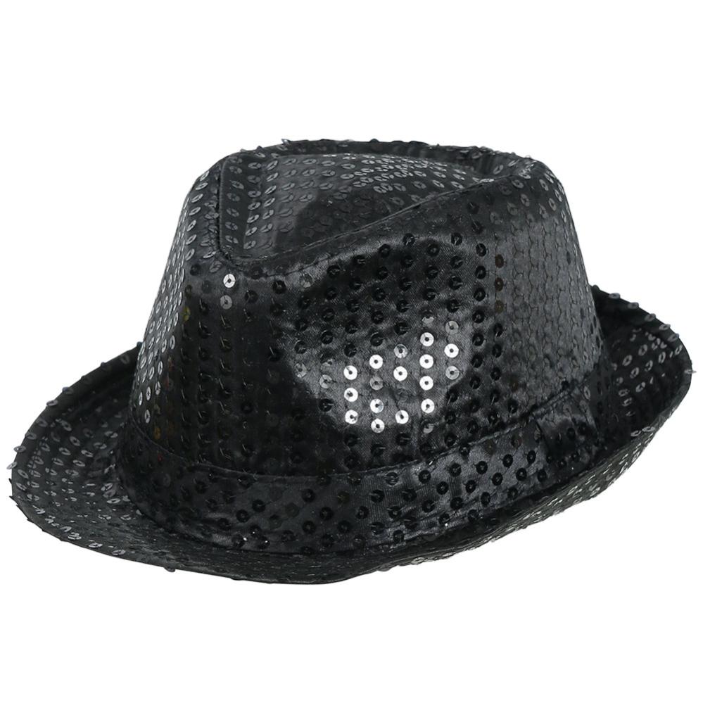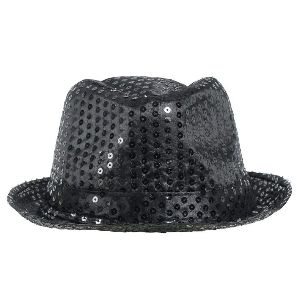 Gangsterihattu Paljeteilla Musta sisältää mustan gangsterihatun, jossa on paljetteja.