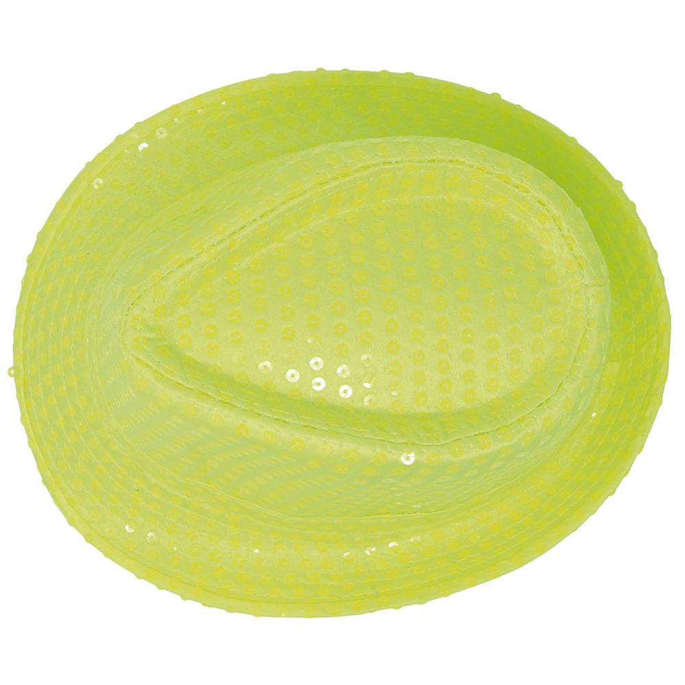 Gangsterihattu Paljeteilla Neonkeltainen sisältää neonkeltaisen paljeteilla koristellun gangsterihatun.