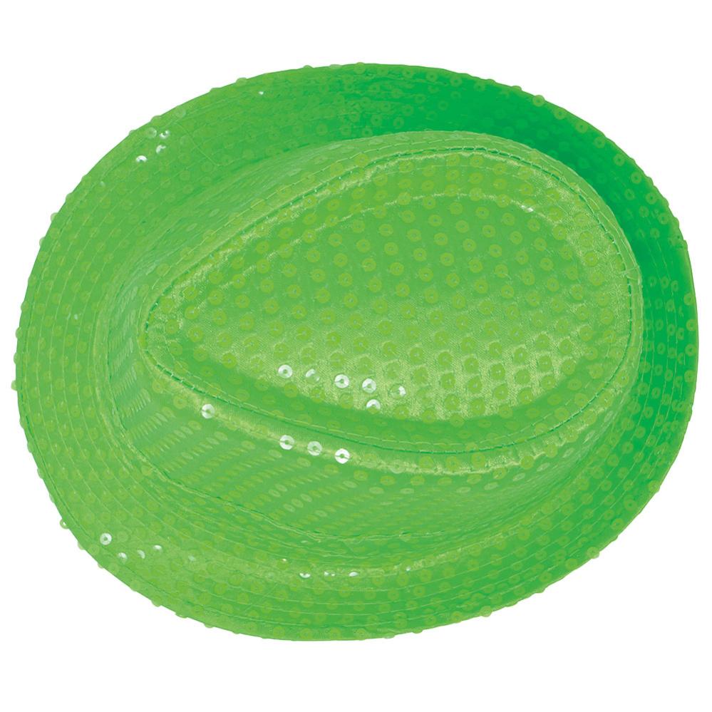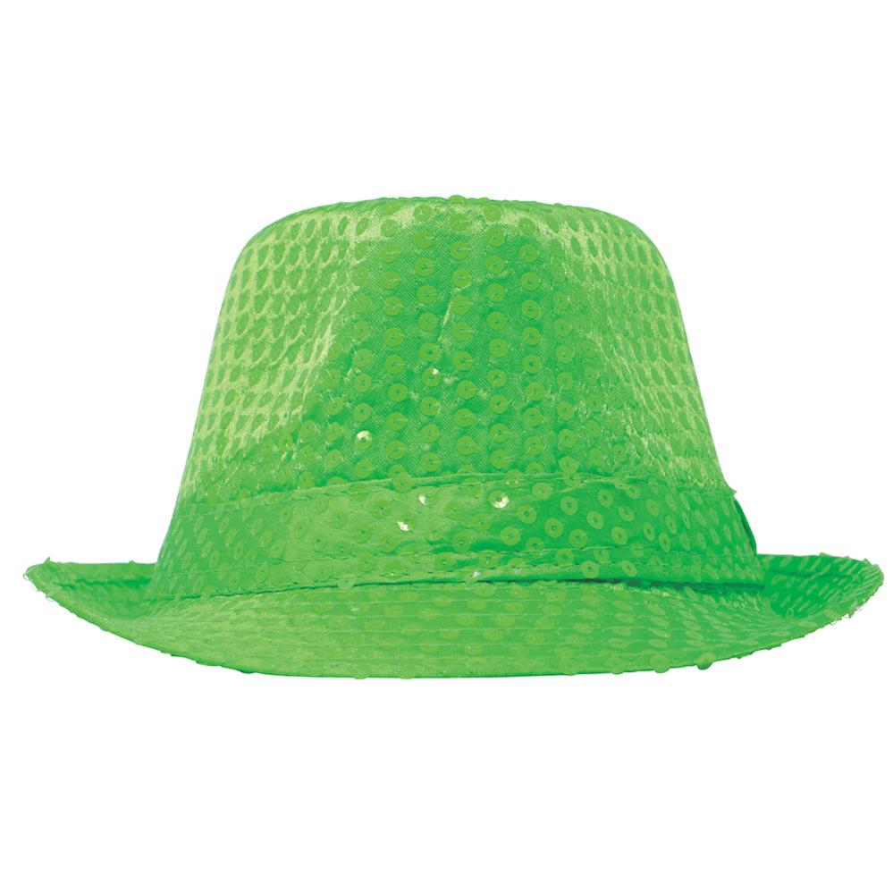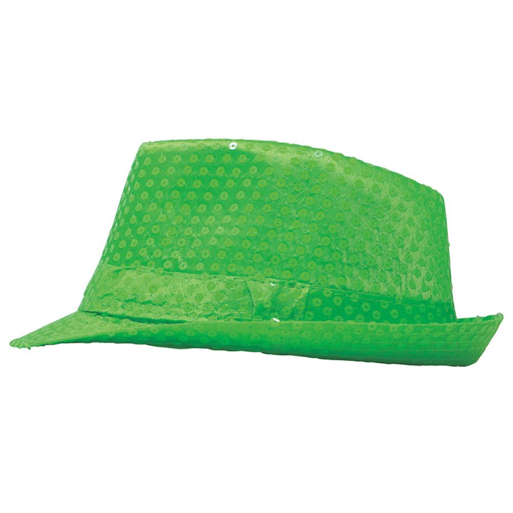 Gangsterihattu Paljeteilla Neonvihreä sisältää neonvihreän paljeteilla varustetun gangsterihatun.