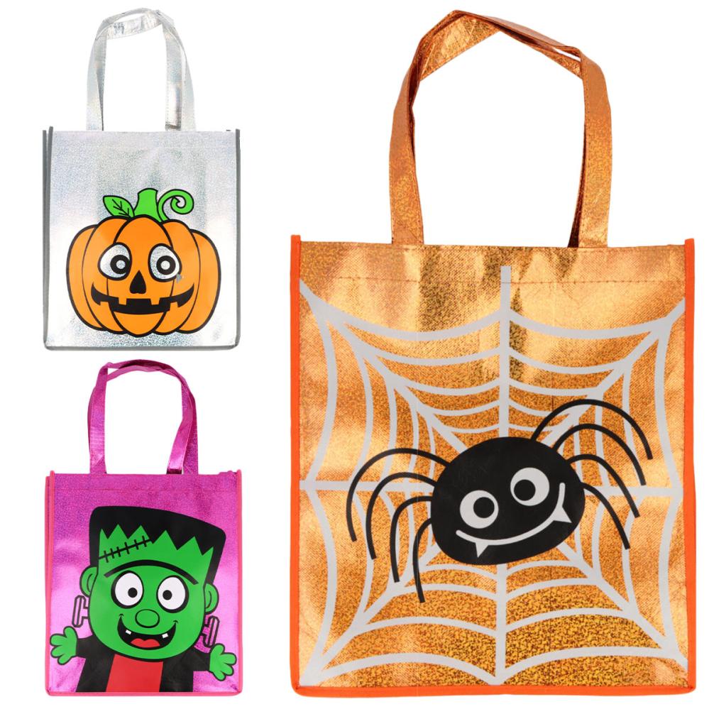 Halloween Kimaltava Karkkipussi sisältää suuren karkki vai kepponen pussin, jossa on kantokahva. Se on täydellinen Halloweeniin ja sitä on saatavana kolmella eri painetulla kuviolla, kimaltavilla taustoilla. Pussi on joko oranssi, jossa on hämähäkki ja hämähäkinverkko, hopeinen, jossa on Halloweenkurpitsa, tai violetti, jossa on Frankensteinin hirviö. Niitä myydään lajittelemattomina ja yksittäin, joten minkä version saat, on yllätys.