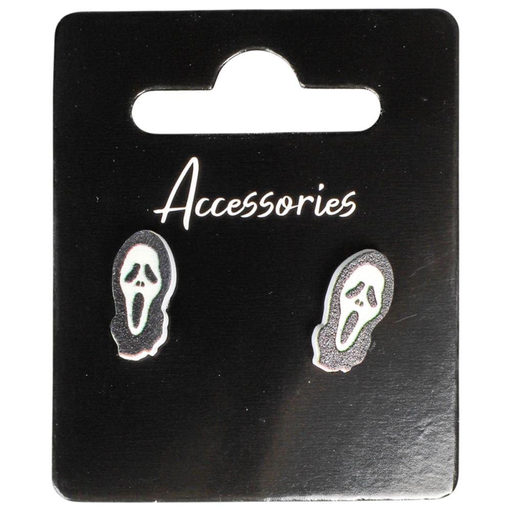 Halloween Korvakorut Ghostface ovat pienet nappikorvakorut, joissa on kuva Scream-elokuvien Ghostface-haamusta.