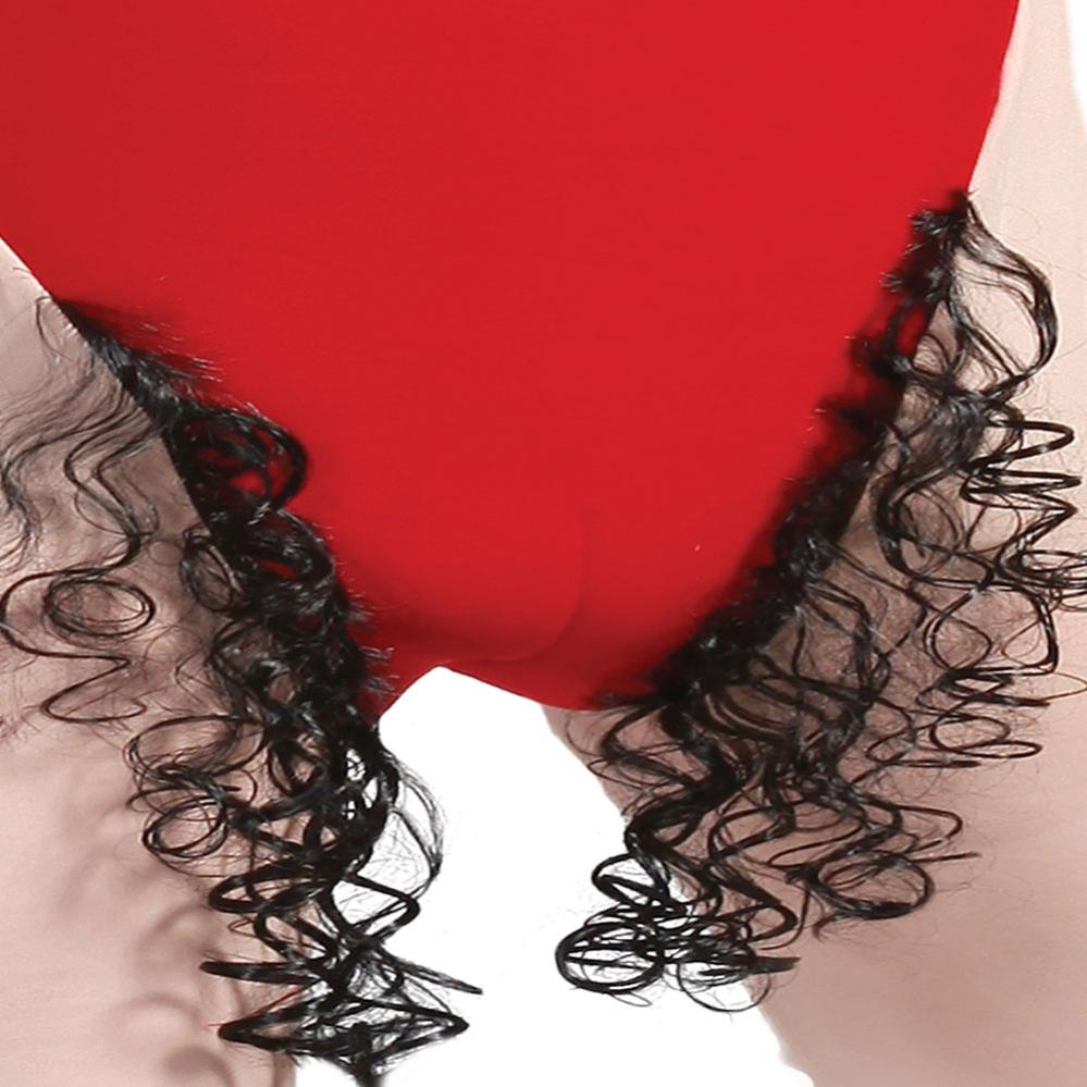 Hengenpelastaja Baywatch Naamiaisasu sisältää asun, joka on punainen avokaulainen body, jossa on valerinnat ja sojottavat tummat häpykarvat. Bodyssa on teksti "BRAZILIAN LIFE + GUARD " valkoisella.