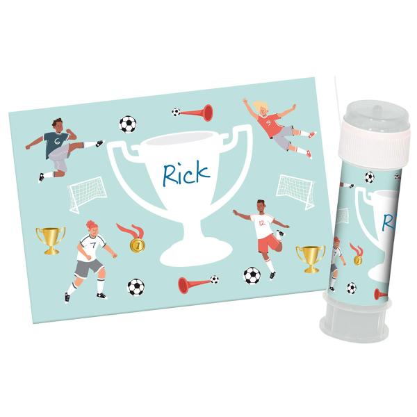 Tietoja tuotteesta Henkilökohtaiset Tarrat Saippuakuplapulloon Jalkapallojuhlat 6 kpl: