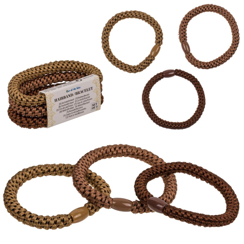 Hiuslenkit Ruskeasävyinen Sekoitus 3 kpl koostuu kestävistä hiuslenkeistä kolmessa ruskeassa sävyssä, joissa on kudottu kuvio ja koristeellinen keskiosa. Niitä voi käyttää myös tyylikkäinä rannekoruina.