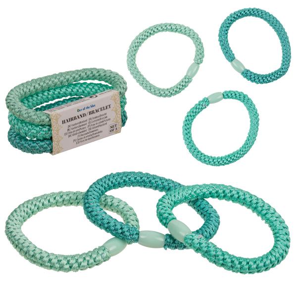 Hiuslenkit Sininensävyinen Sekoitus 3 kpl koostuu kestävistä hiuslenkeistä kolmessa pehmeässä sinisen sävyssä, kudotulla kuviolla ja koristeellisella keskiosalla. Niitä voi käyttää myös tyylikkäinä rannekoruina.