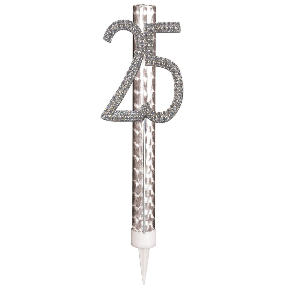 Hopea Jääsoihtu Numerolla 25 sisältää holografisen hopeanvärisen jääsoihdun numerolla 25, joka on koristeltu hopeanvärisillä strassikivillä.