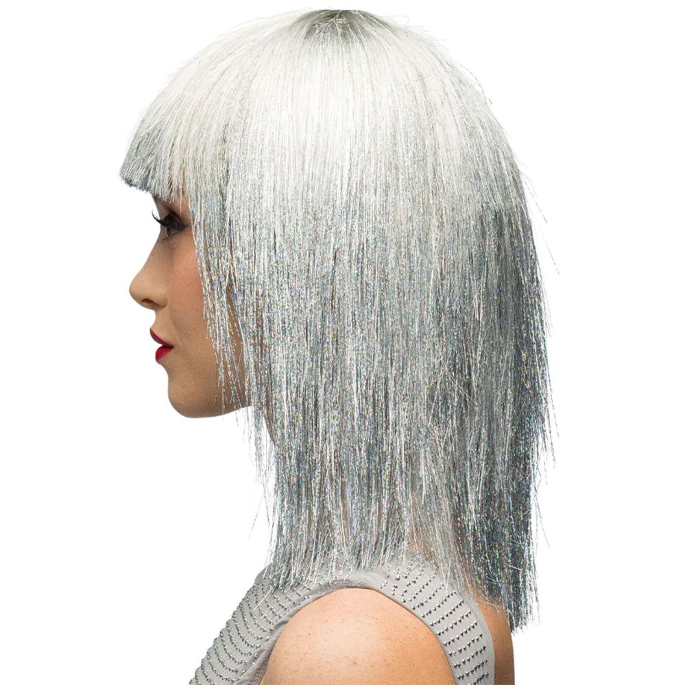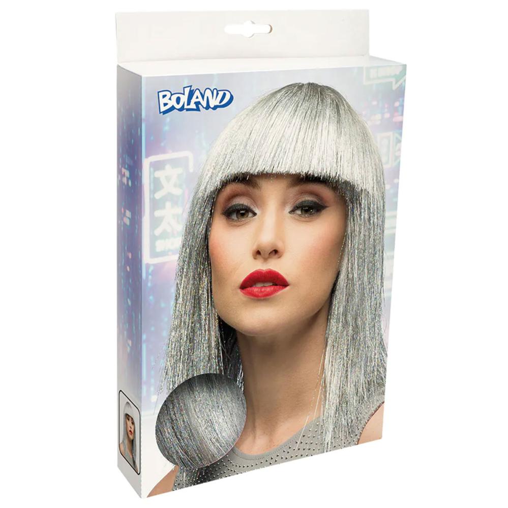 Valaise juhlat hopeisella kimalleperuukilla, joka yhdistää ajattoman tyylin ja modernin asenteen. Tämä elegantti polkkaperuukki on täydellinen hopeaperuukki sinulle, joka etsit kimmeltävää juhlaperuukkia.