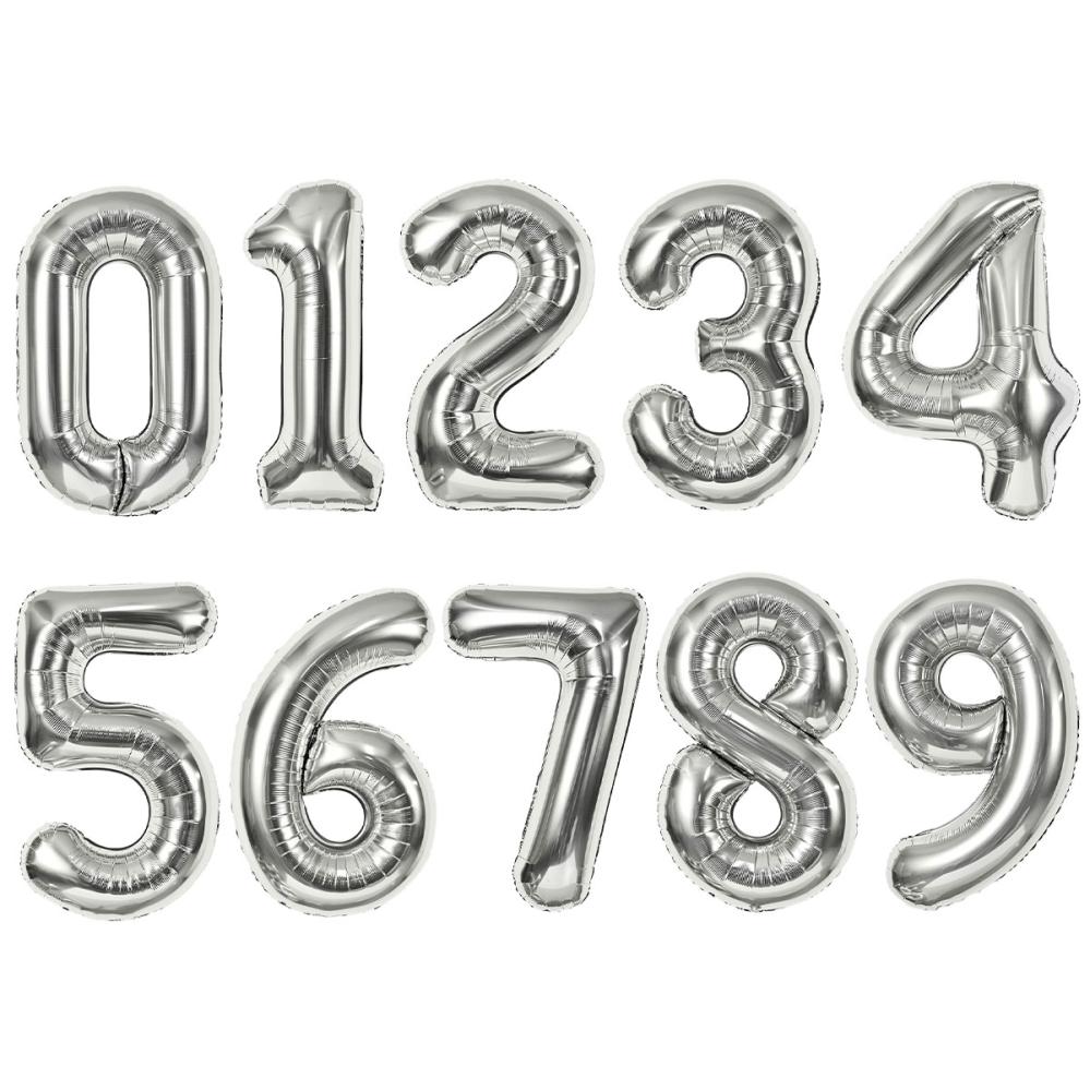 - Hopeanvärinen numeron muotoinen ilmapallo
