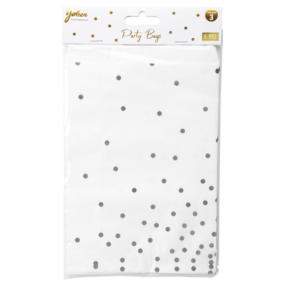 Tietoa tuotteesta Hopeapilkulliset Juhlapussit 8 kpl: