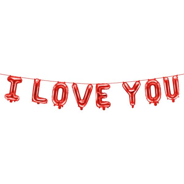 I Love You Kirjainilmapallot Punaiset sisältää 8 punaista foliokirjainilmapalloa, jotka muodostavat tekstin "I Love You". Ilmapallot ovat noin 40 cm suuruisia ja niiden mukana tulee myös 3 metriä pitkä ilmapallonaaru, joka on samaa punaista väriä. Ilmapalloissa on itsestään sulkeutuva venttiili ja ne täytetään ilmalla ennen kuin ne pujotetaan mukana tulevaan ilmapallonaaruun.