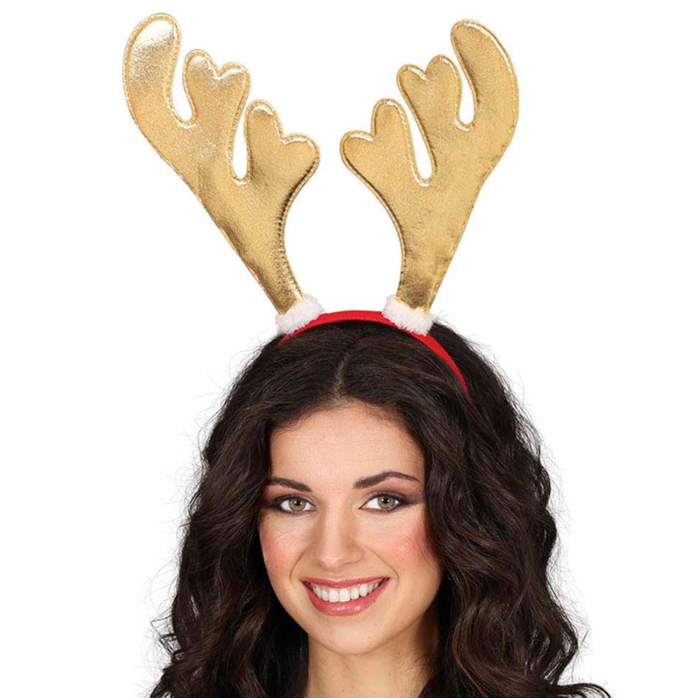Tee näyttävä sisääntulo pikkujouluihin tämän joulupannan avulla, joka herättää taatusti huomiota. Isot kultaiset poronsarvet pannassa tekevät siitä täydellisen joulukuvioisen pannan ja hauskan jouluasusteen.