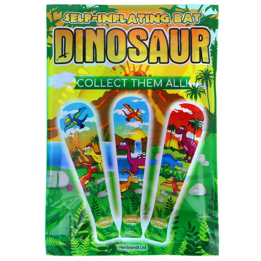 Itsetäyttyvä Pesäpallomaila Dinosaurus on pesäpallomaila, joka täyttyy itsestään ja jossa on värikäs dinosauruskuviointi. Avaa tuote kokonaan, riko sen sisällä oleva kupla, ravista reippaasti ja katso sen täyttyvän. Sitä on saatavilla kolmella eri kuosilla, myydään lajitsemattomina ja yksittäin, joten on yllätys, minkä kuosin saat.