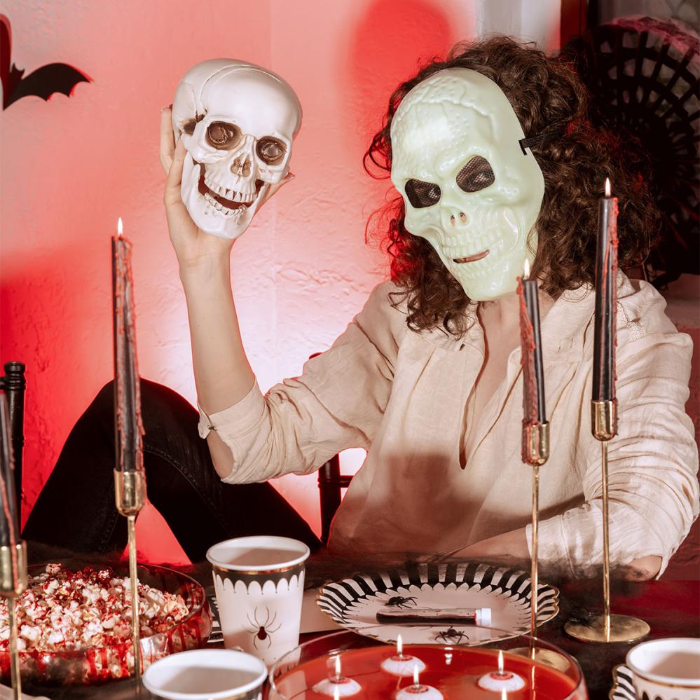 Pukeudu todella karmivaan tunnelmaan, kun haluat käyttää itsevalaisevaa maskia halloweenissa tai naamiaisissa, jolloin pääkallo luo hyytävän efektin pimeässä. Kallonaamio tuo juhlaan erityisen tunnelman.
