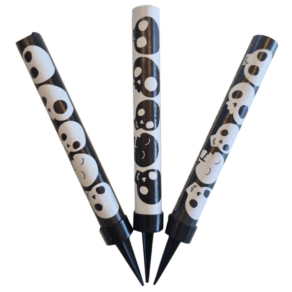 Jääsoihdut Halloween 3-kpl koostuu kolmesta mustavalkoisesta jääsoihdusta, jotka on koristeltu pääkalloilla.