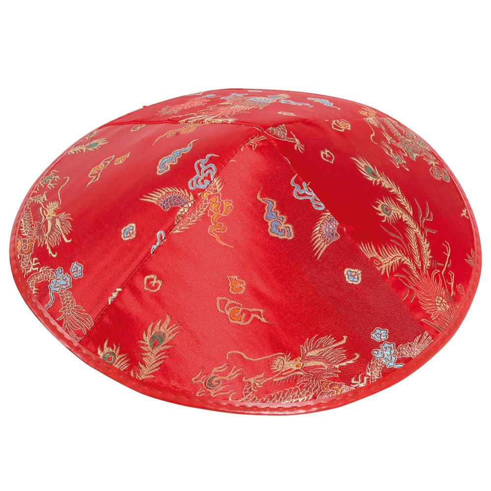 Japanilaistyylinen Hattu Punainen sisältää punaisen japanilaistyylisen hatun, joka on koristeltu lohikäärmeillä ja kasveilla. Hattu kiinnitetään päähän mustalla elastisella nauhalla leuan alta.