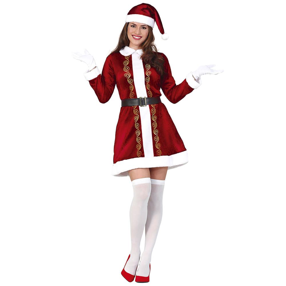Joulumuorin Asu Tummanpunainen on jouluasu tummanpunaisen ja valkoisen väreissä. Asu sisältää lyhyen mekon kultaisilla yksityiskohdilla, mustan vyötärövyön kultasoljella ja tonttulakin.