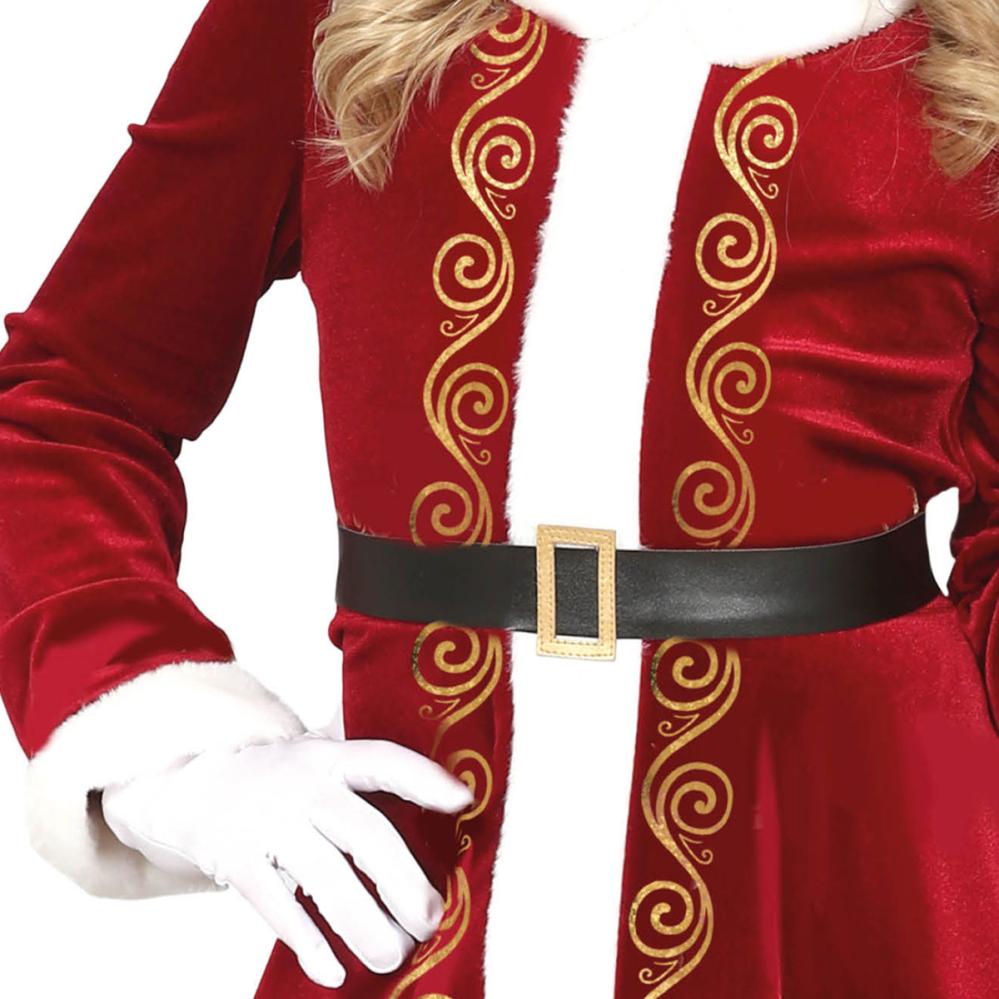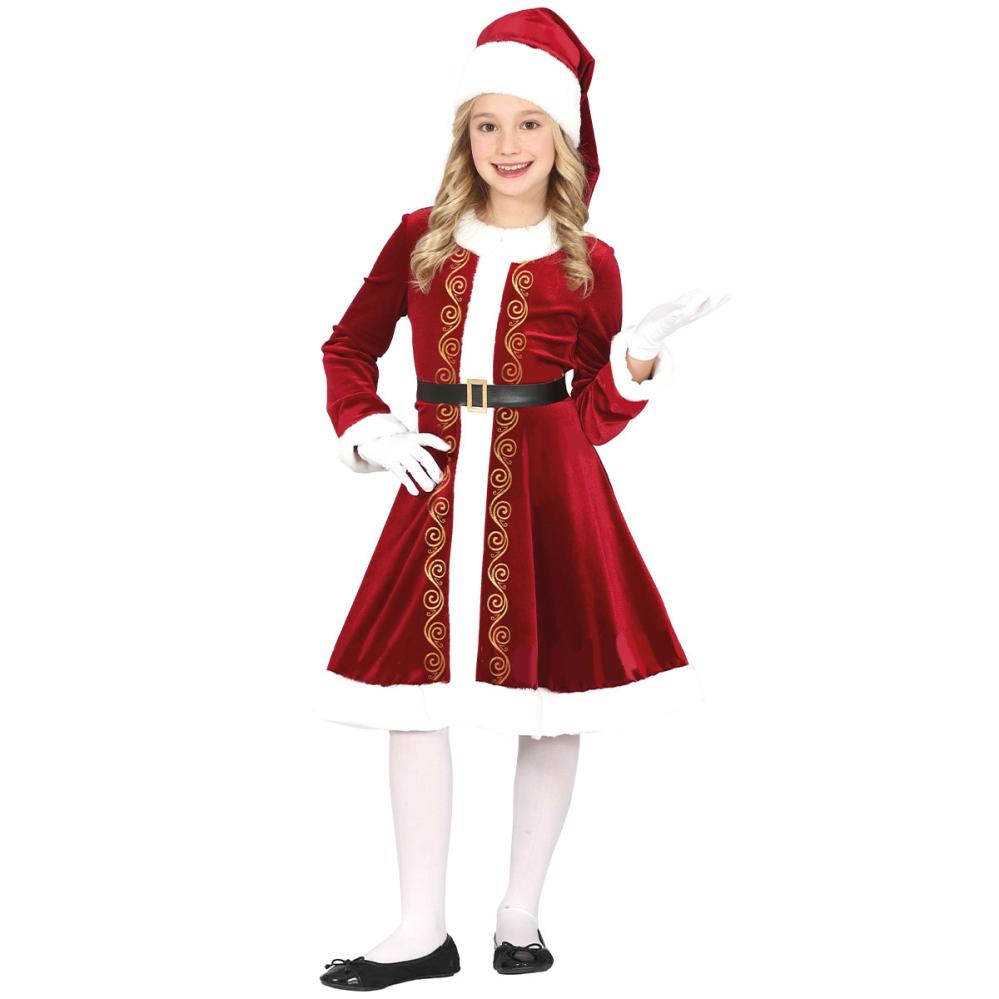 Joulumuorin Asu Tummanpunainen Lapsille on lasten asu jouluteemalla tummanpunaisena ja valkoisena. Asuun kuuluu lyhyt mekko, jossa on kullanvärisiä yksityiskohtia, musta vyötärövyö kultaisella soljella ja tonttulakki.