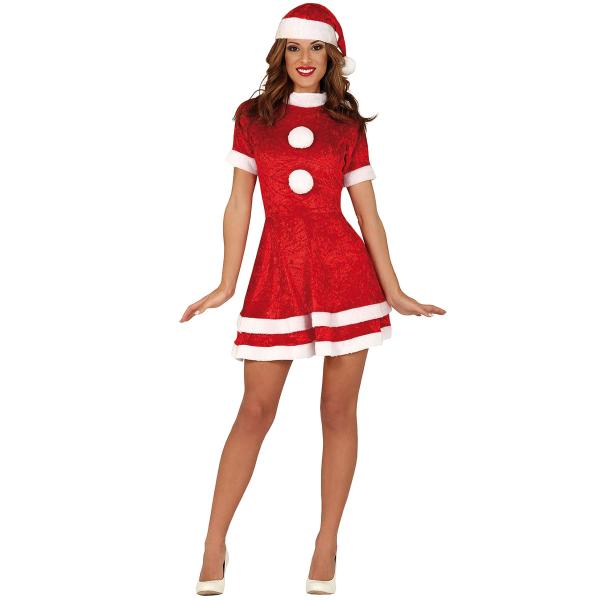 Joulumuorin Joulumekko Tonttulakilla sisältää punavalkoisen, lyhyen plyysimekon, jota koristavat kaksi valkoista pompulaa ja jossa on lyhyet hihat. Asuun kuuluu myös yhteensopiva tonttulakki.