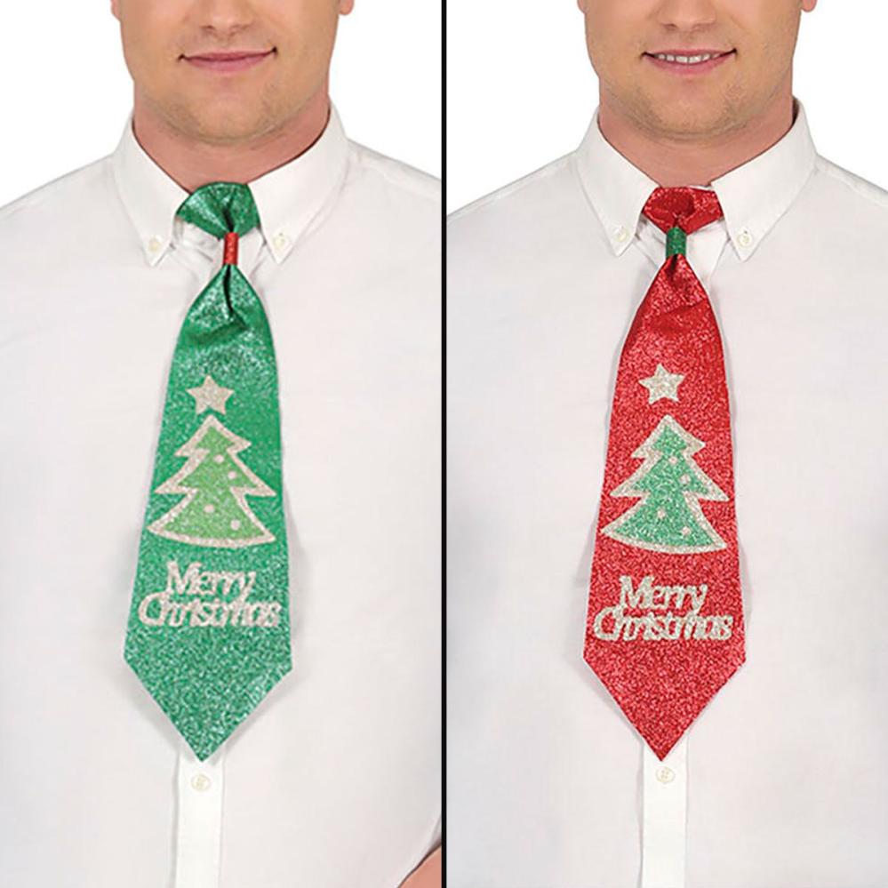Joulusolmio Merry Christmas sisältää kimaltavan solmion, jossa on joulukuusen kuva ja teksti "Merry Christmas" kirjoitettuna kullalla. Solmiossa on lisäksi musta joustava niskahihna, joka tekee sen pukemisesta ja riisumisesta helppoa. Sitä on saatavilla punaisena ja vihreänä, mutta se myydään lajiteltuna ja kappaleittain, joten saamasi väri on yllätys.
