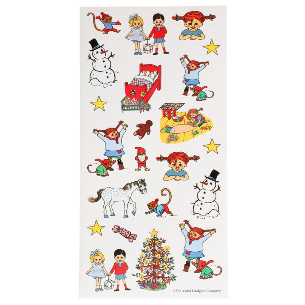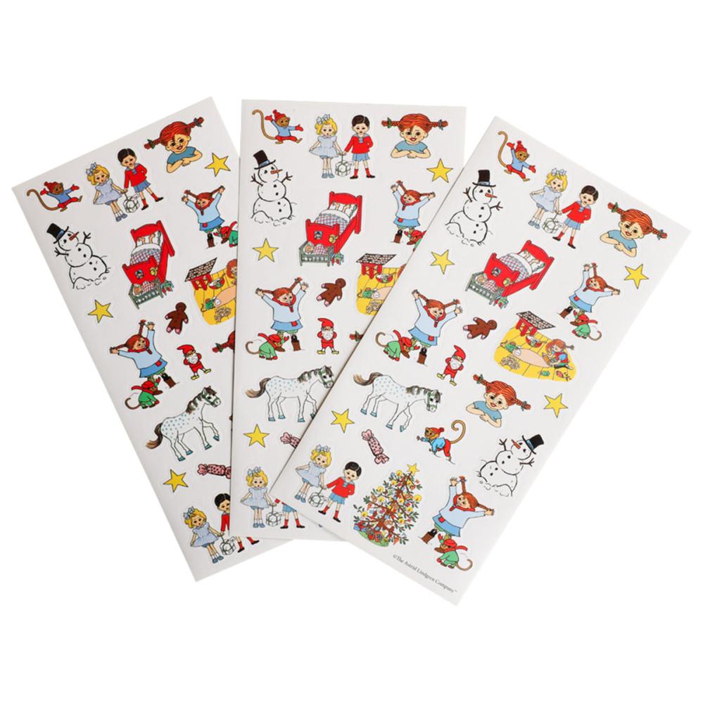 Joulutarrat Peppi Pitkätossu 66 kpl sisältää kolme arkkia, joissa on yhteensä 66 erikokoista tarraa, jotka esittävät Astrid Lindgrenin Peppi Pitkätossua jouluaiheissa.