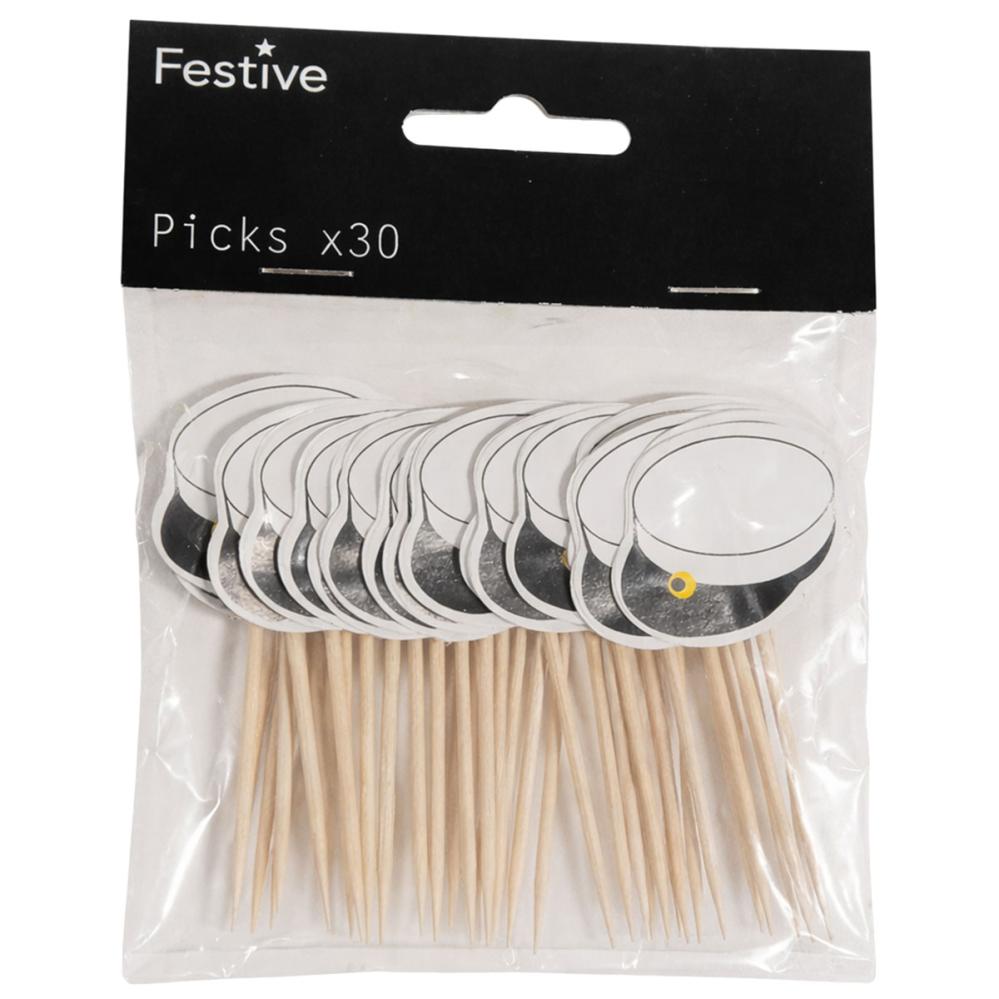 Juhlatikut Ylioppilaslakki 30 kpl sisältää kolmekymmentä puutikkua, joissa on mustavalkoisia ylioppilaslakkeja esittävät paperikoristeet. Koristeissa on kaksipuolinen painatus, joka antaa tyylikkään ilmeen joka suunnasta.
