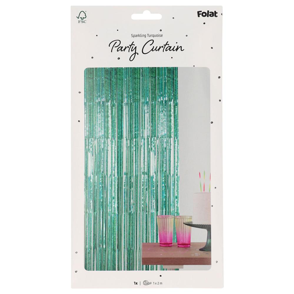 Luo wow-efekti tällä hohtavalla turkoosilla oviverholla, joka on täydellinen oviverhoksi tai juhlien koristeluun. Tämä glitterverho toimii myös juhlaverhona tai ripsuverhona ja saa juhlat hohtamaan erityisen paljon.